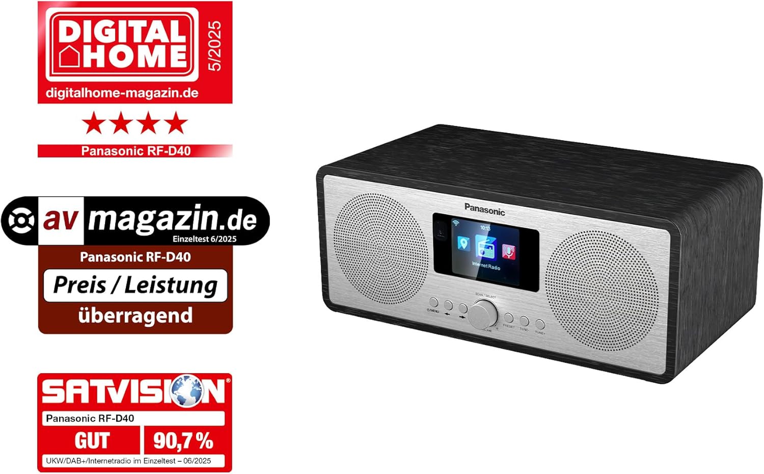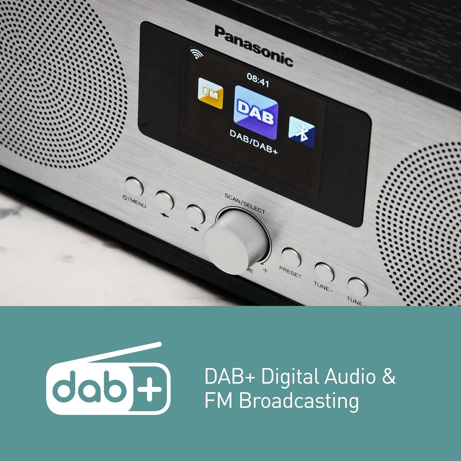 Panasonic RF-D40EG-K интернет и DAB+/FM радио с Bluetooth, 6 вата, 7,5 см високоговорител, 2,4-инчов TFT цветен LCD дисплей, будилник и таймер за заспиване, дистанционно управление, USB, Wi-Fi, черно