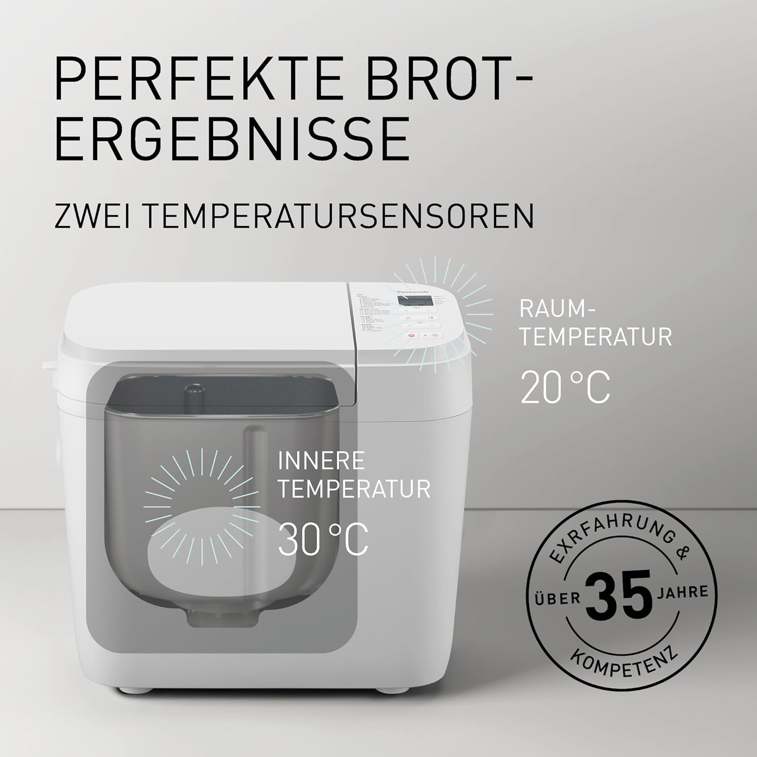 • 2 ТЕМПЕРАТУРНИ СЕНЗОРА: тази машина за хляб има 2 вградени сензора за определяне на вътрешната и външната температура, за да оптимизира всяка програма и да ви осигури възможно най-доброто качество на хляба