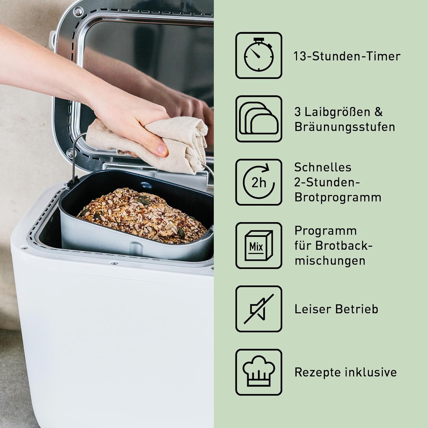 • Печене без глутен: тази машина за хляб ви предлага 4 удобни за потребителя автоматични програми за вкусен хляб, кексове, тесто за пица и тесто за паста без глутен