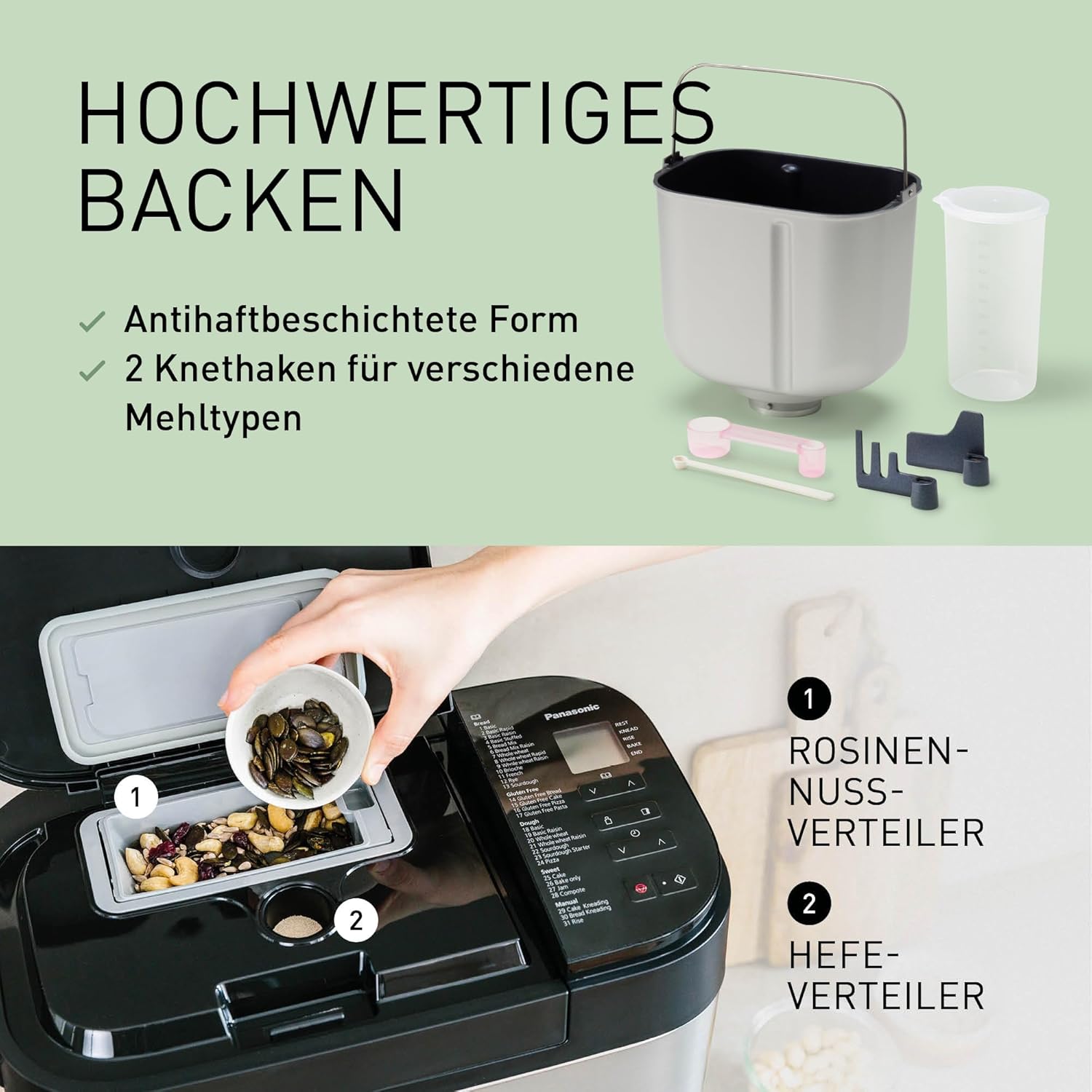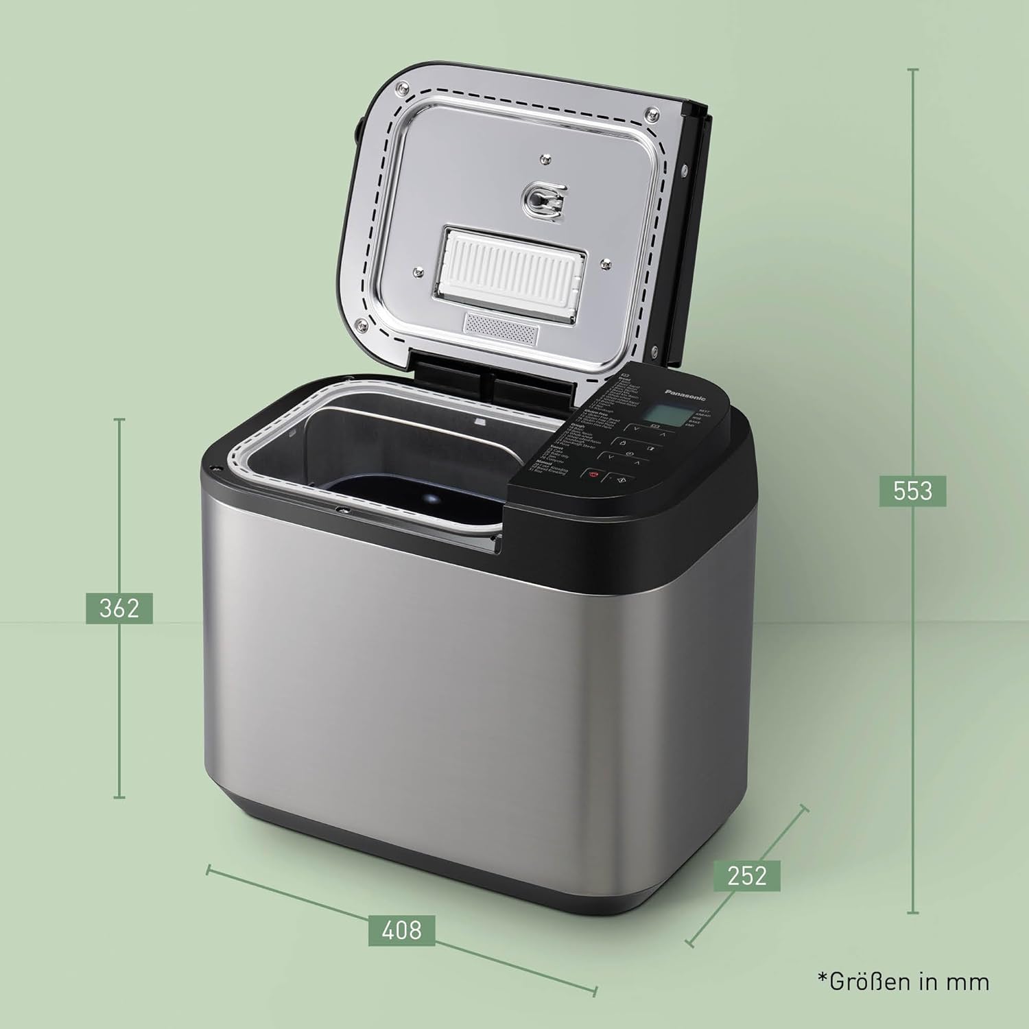 Panasonic SD-YR2550 Напълно автоматична машина за хляб, хоризонтален дизайн, разпределител за стафиди и мая, 31 автоматични програми, два температурни сензора, 13-часово отлагане, сребрист