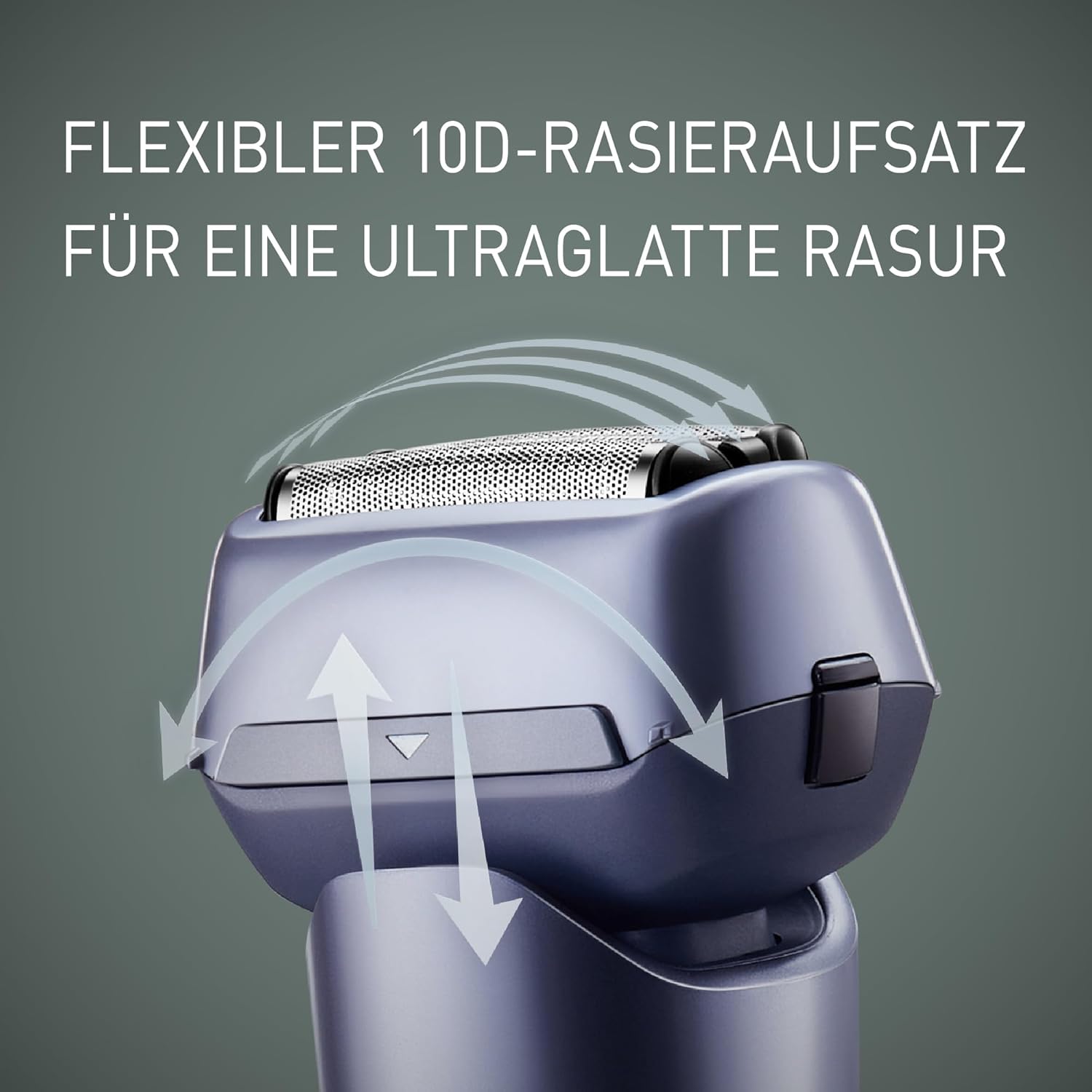 • 10D ГЪВКАВА БРЪСНЕЩА ГЛАВА: Бръснещата глава на електрическата самобръсначка се движи в 4 посоки и има 6 подвижни ножчета, които се адаптират към контурите на лицето и намаляват дразненето на кожата.