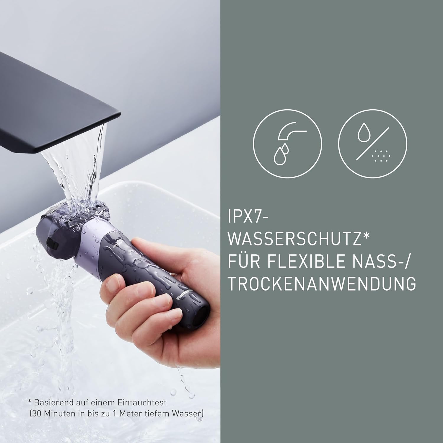 • МОКРО/СУХО И ВОДОУСТОЙЧИВО: Дизайнът IPX7 позволява бръснене с гел или пяна, под душа или на сухо, докато водоустойчивата самобръсначка може да се изплаква под течаща вода.