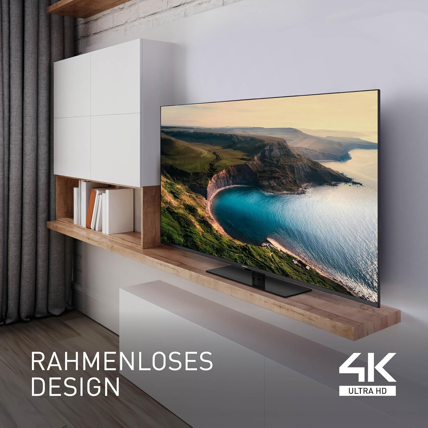 Dieser Fernseher fügt sich mit seinem eleganten, rahmenlosen Design perfekt in jedes Wohnambiente ein.