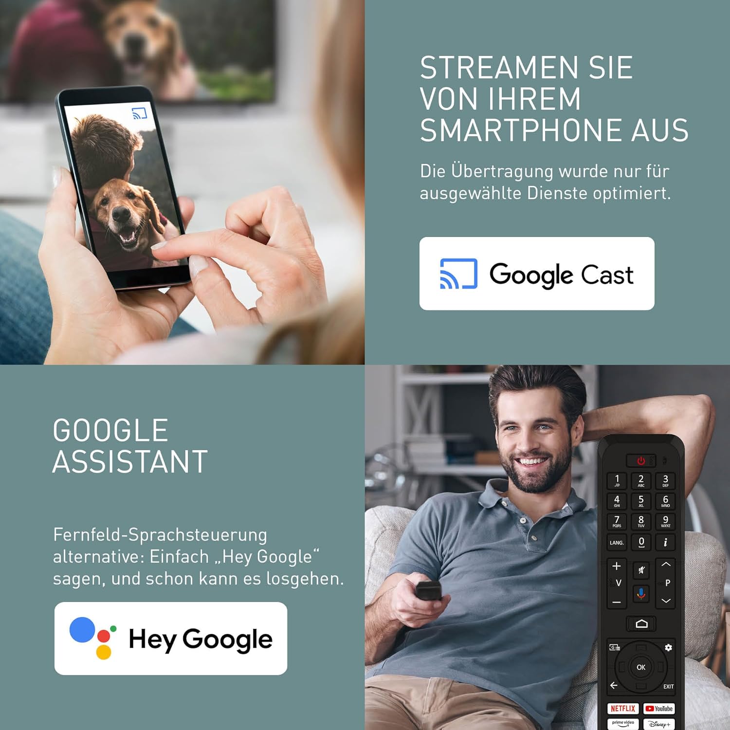 Стартирайте приложения. Намирайте филми и телевизионни предавания. Стриймвайте музика. Управлявайте телевизора си. Всичко това с гласа си. Помолете Google Assistant бързо да търси във всички ваши приложения, за да намери предаването, което търсите, включително YouTube, да ви дава персонализирани препоръки за това какво да гледате следващо, да ви съобщава най-новите спортни резултати или да управлява вашите умни домашни устройства. Просто натиснете бутона Google Assistant на дистанционното, за да започнете.