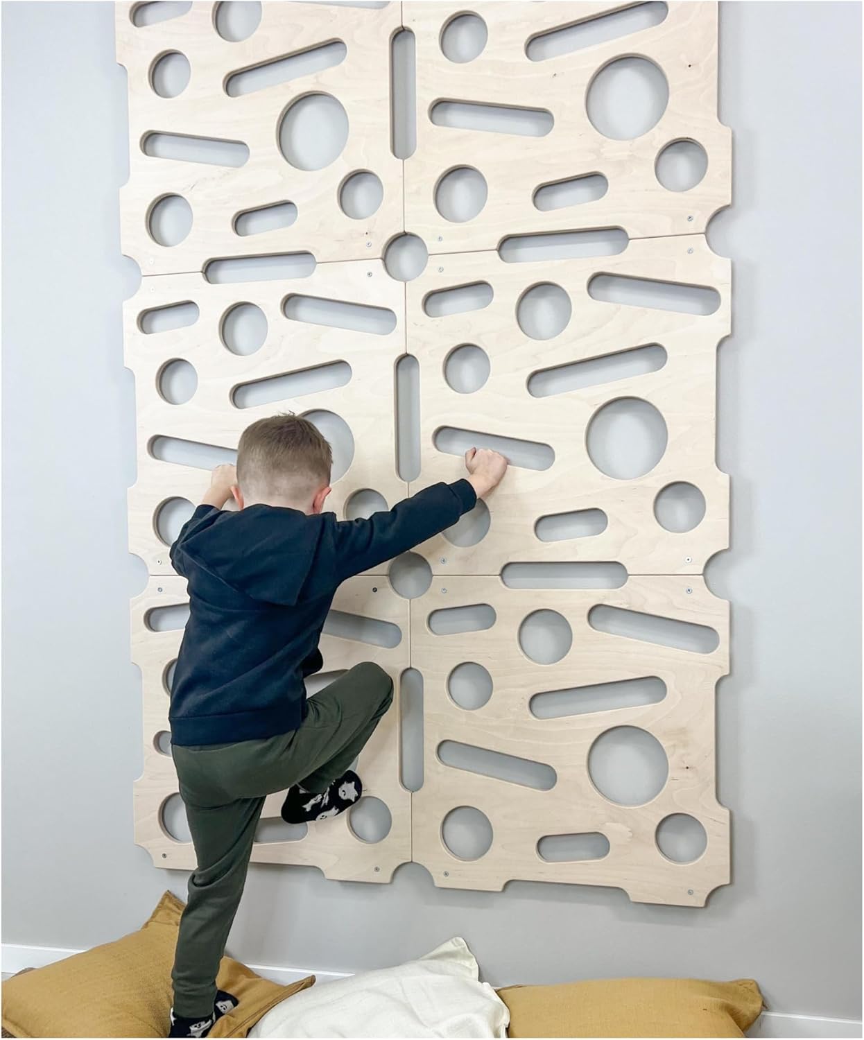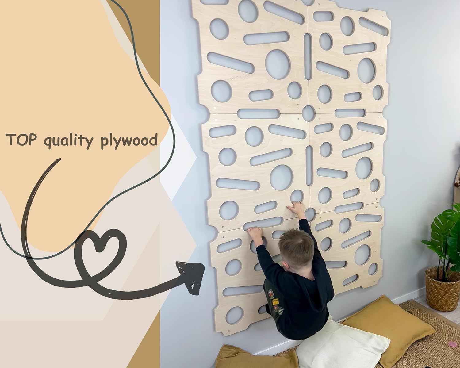 Запознайте детето си с вълнуващия свят на катеренето с нашите детски панели за стена за катерене, изработени от висококачествен балтийски брезов шперплат за изключителна издръжливост и безопасност. Гладко шлайфаната, нетоксична повърхност осигурява естествено усещане, безопасно за децата, без химикали или покрития, които биха могли да раздразнят чувствителната кожа. Тези панели са идеални за създаване на стена за катерене „Направи си сам“ у дома. Това е чудесен начин да помогнете на децата да подобрят силата, координацията и увереността си, докато се забавляват с катерене на закрито. Здравият, екологичен и безопасен дизайн прави тези панели надежден вариант за семейства, които искат да създадат активно пространство, което насърчава физическата активност и играта.