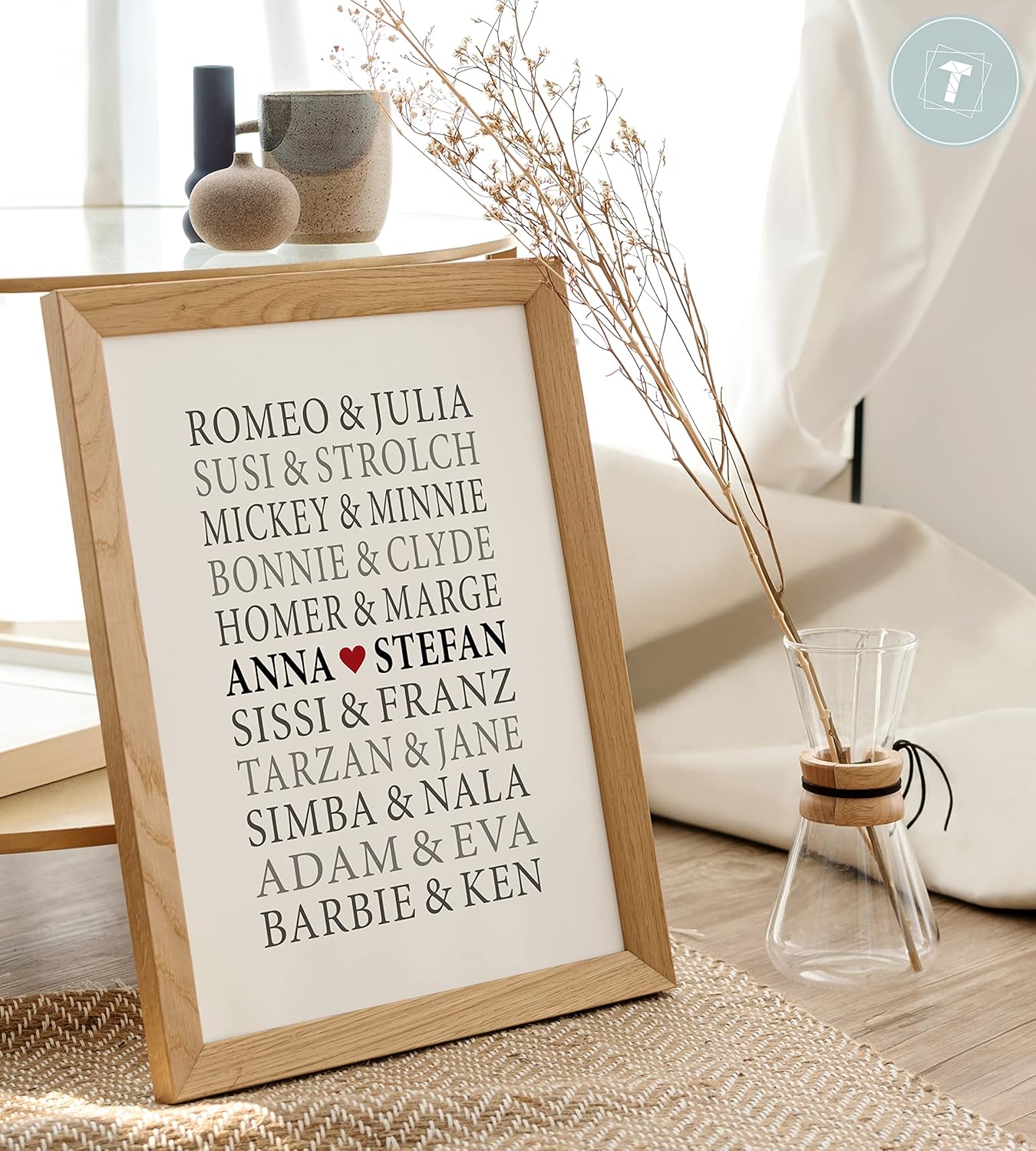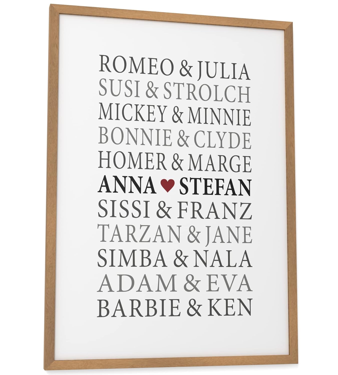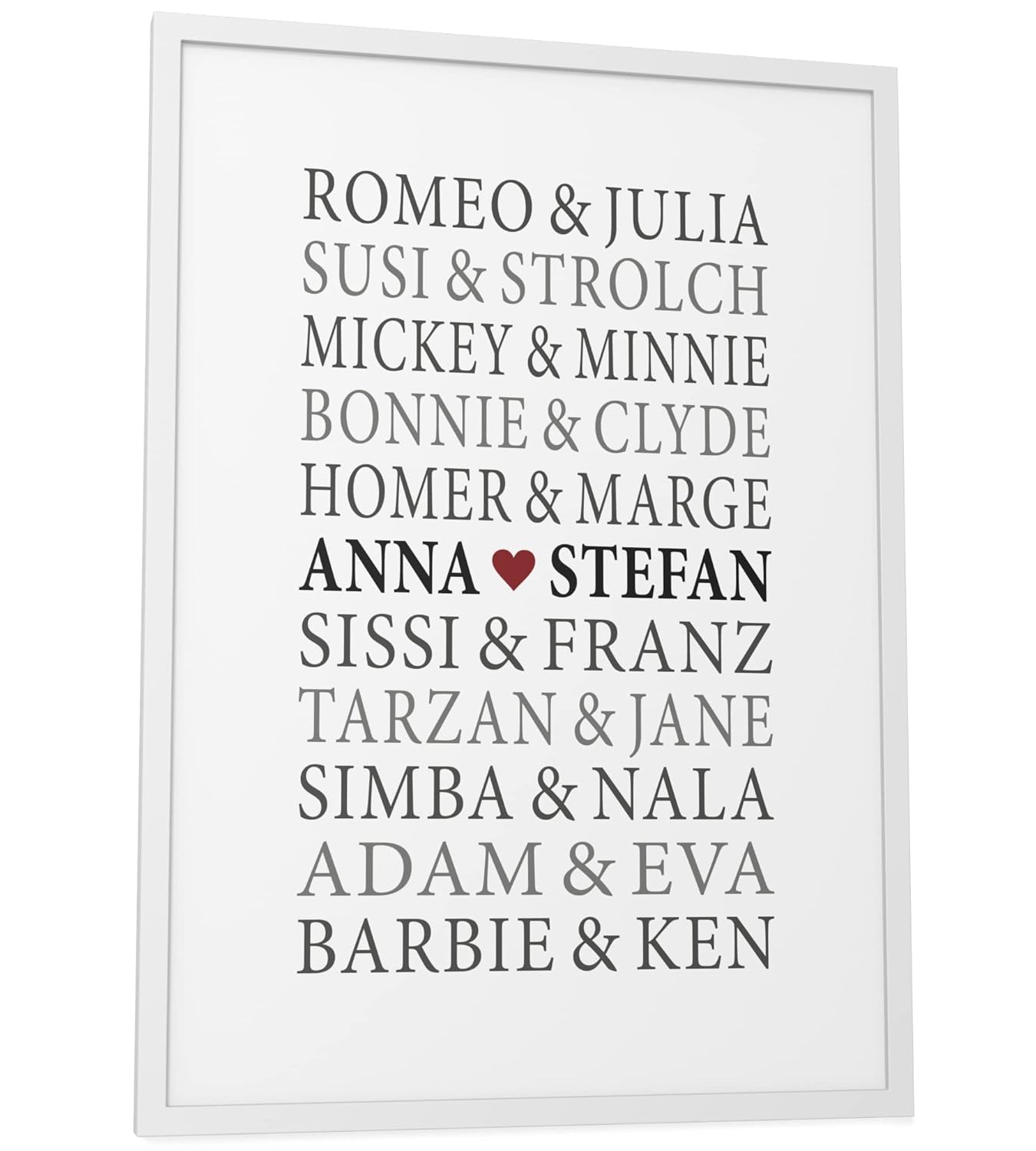Papierschmiede® Чифт плакати, персонализирани с име, DIN A3 (30 x 42 см) Избор на рамка, Сватбен подарък с рамка, Име, Подаръчна картина за годишнина, Стенна картина за сватба "Ромео и Жулиета"
