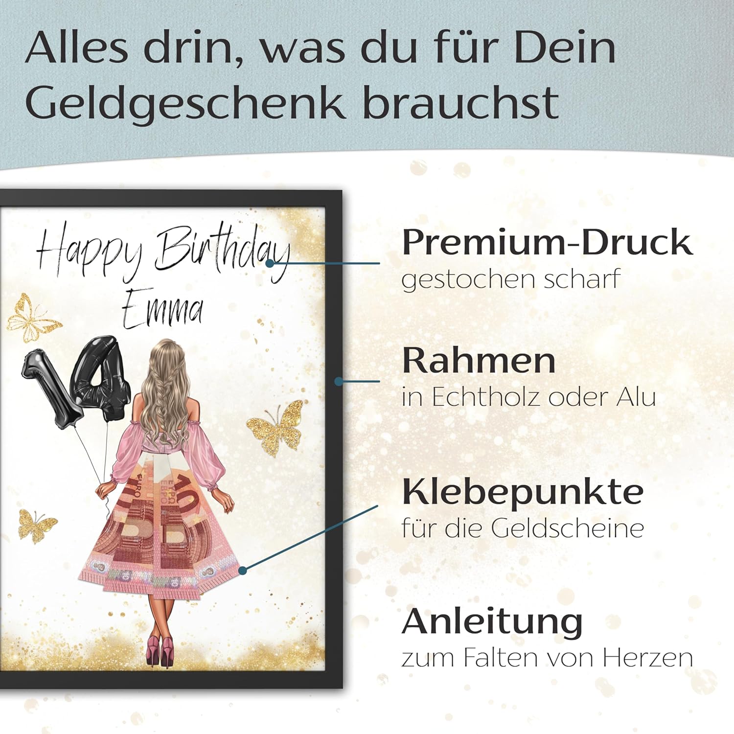 Papierschmiede® Паричен подарък за 14-ти рожден ден | Изглеждайте променливо! | 14-годишна снимка с рамка, подарък за рожден ден за най-добър приятел, подарък за 14-ти рожден ден за съпруга/момиче, подаръци | Винтидж 2011