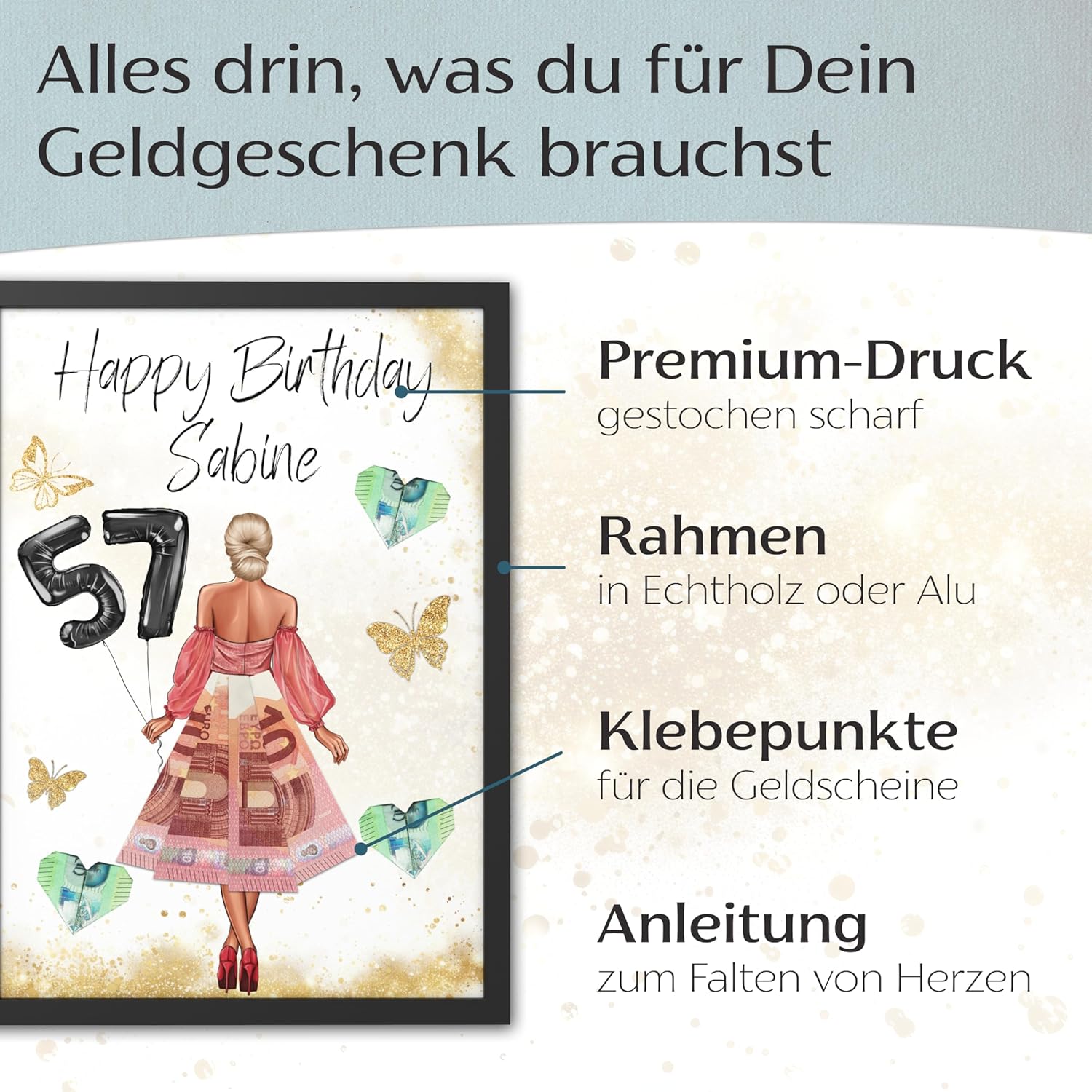 • Уникален подарък за рожден ден - Креативният плакат за подарък с пари е перфектната изненада за жени, момичета и най-добри приятелки. Стилен начин да подарите пари, като същевременно създадете траен спомен.