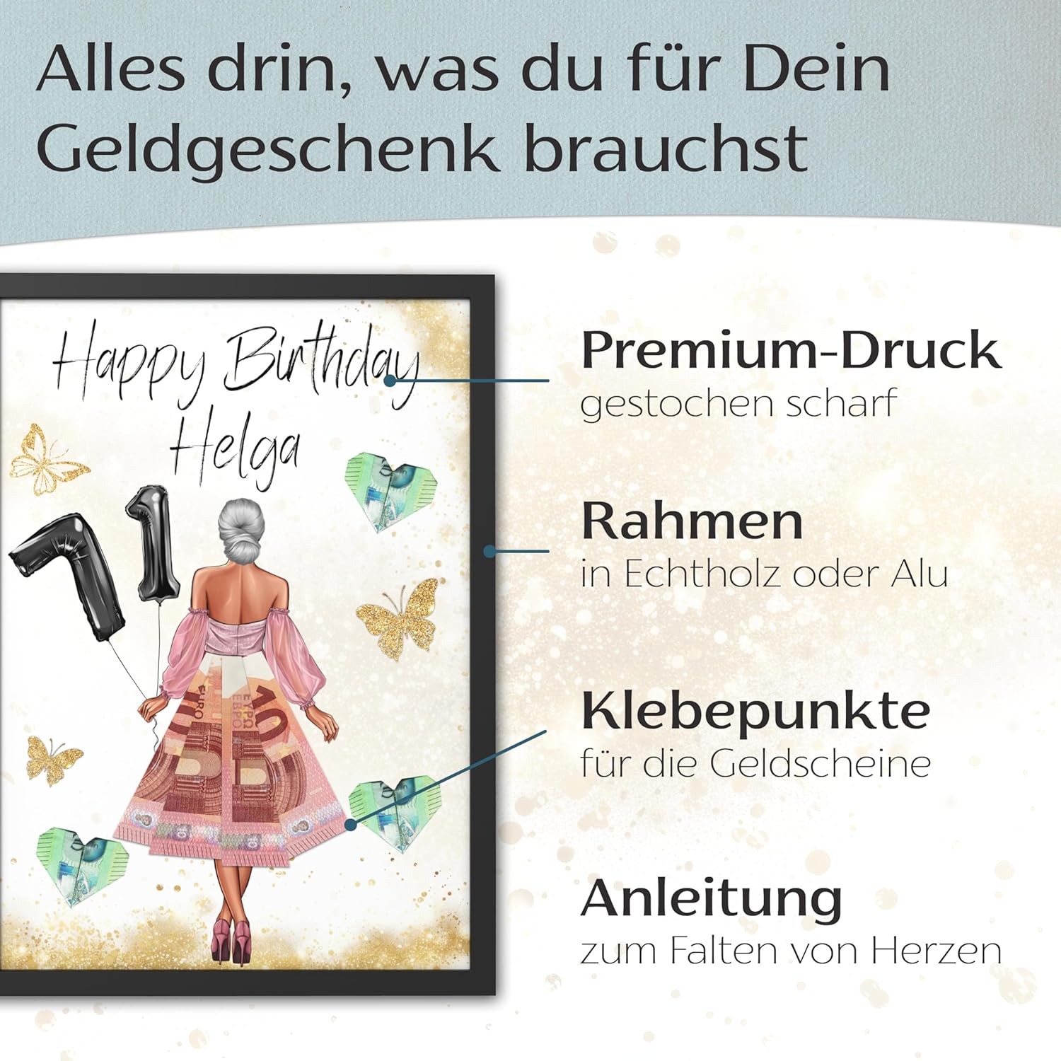 • Уникален подарък за рожден ден - Креативният плакат за подарък с пари е перфектната изненада за жени, момичета и най-добри приятелки. Стилен начин да подарите пари, като същевременно създадете траен спомен.