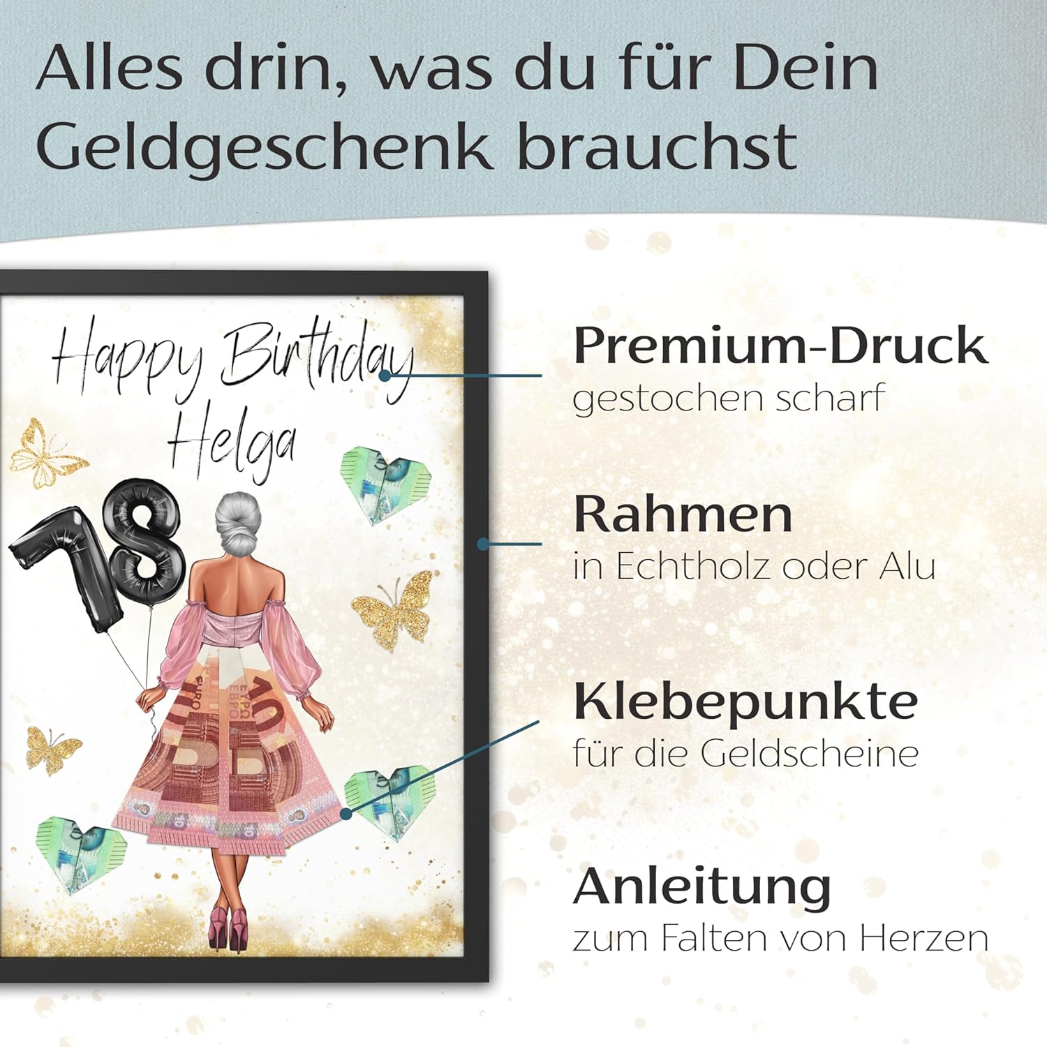 • Уникален подарък за рожден ден - Креативният плакат за подарък с пари е перфектната изненада за жени, момичета и най-добри приятелки. Стилен начин да подарите пари, като същевременно създадете траен спомен.