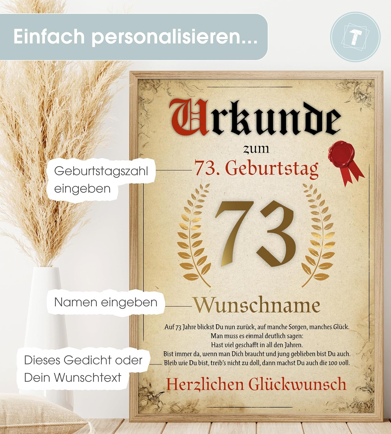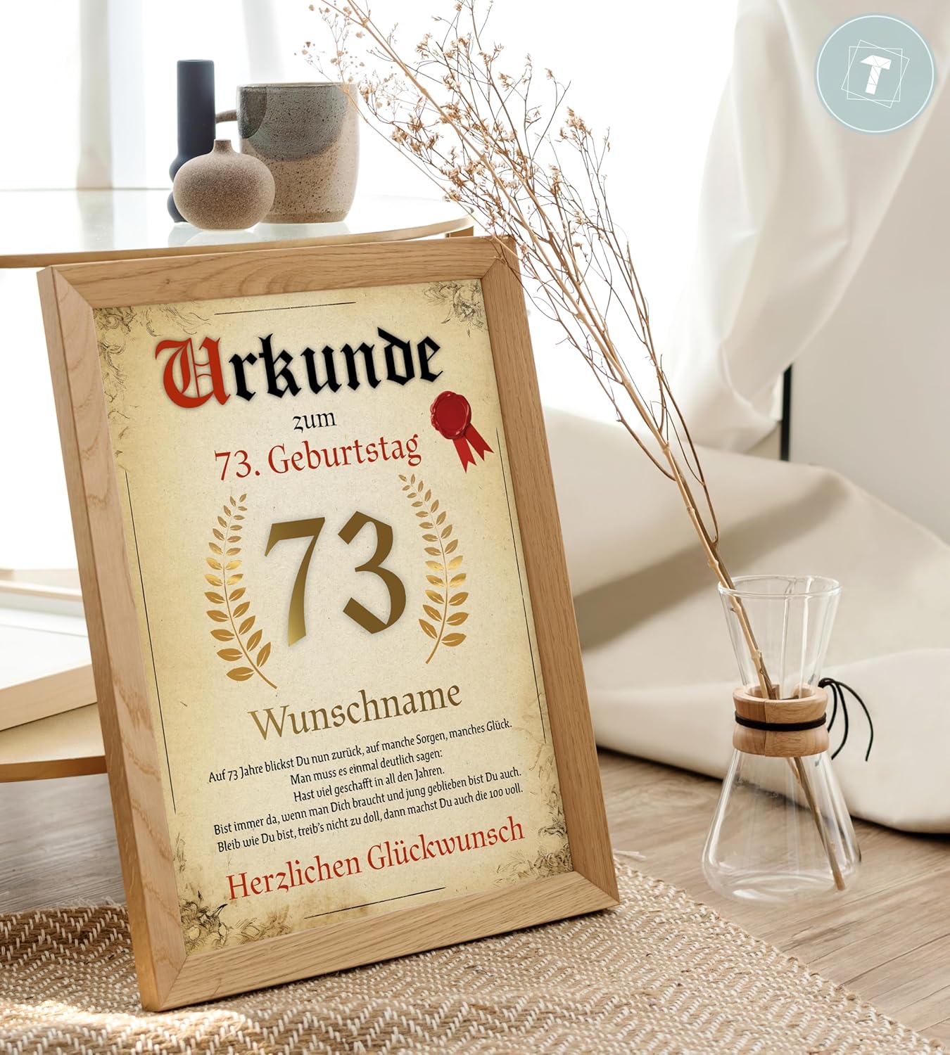 Papierschmiede® Персонализиран сертификат Подарък за 73-ти рожден ден Жени Мъже 73 години Картичка за рожден ден Подарък за рожден ден Картичка за 73-ти рожден ден Персонализиран сертификат за рожден ден Винтидж 1952