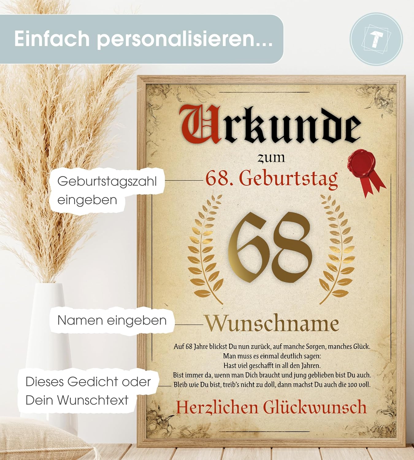 Papierschmiede® Персонализиран сертификат за 68-ми рожден ден Подарък за жени Мъже 68 години Картичка за рожден ден Подарък за рожден ден Картичка за 68-ми рожден ден Персонализиран сертификат за рожден ден Винтидж 1957
