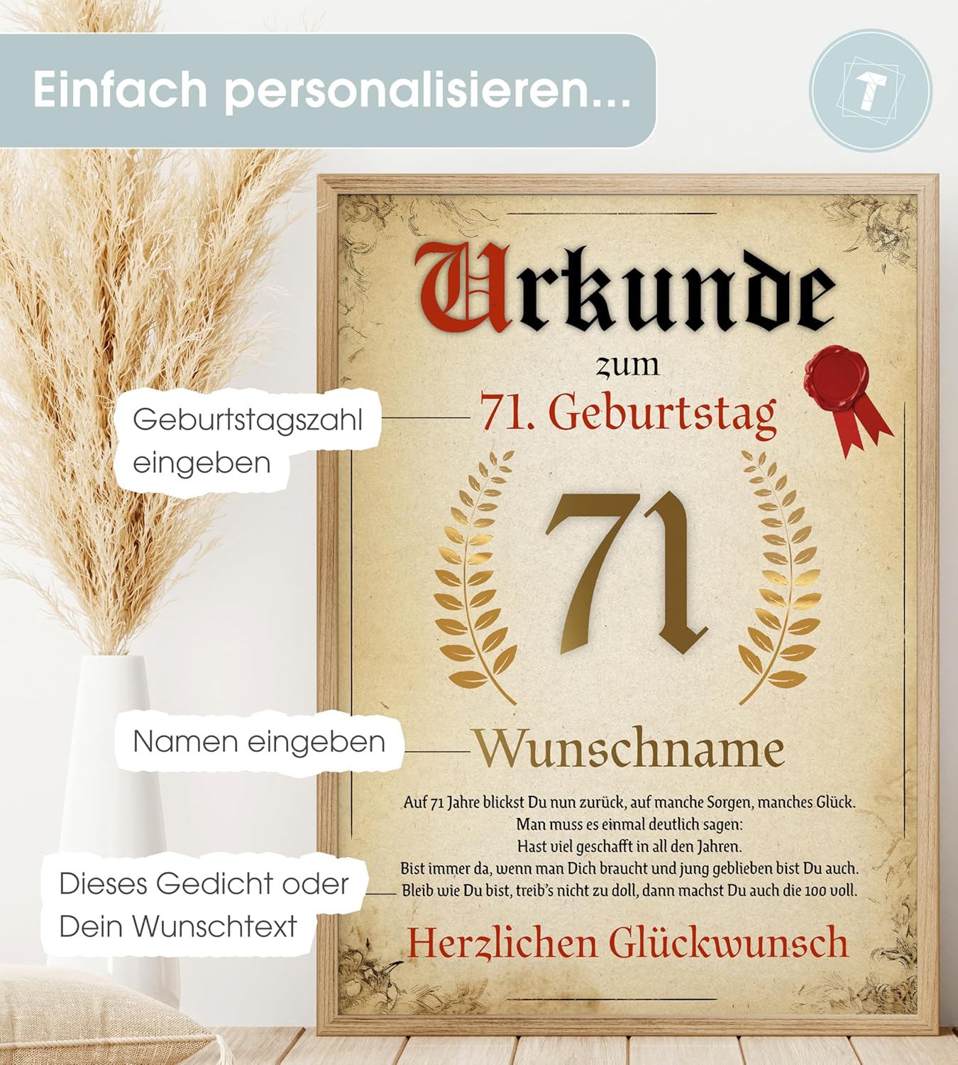 Papierschmiede® Персонализирана картичка за 71-ви рожден ден за жени и мъже, картичка за 71-ви рожден ден, подарък за рожден ден, картичка за 71-ви рожден ден, персонализиран сертификат за рожден ден, винтидж 1954