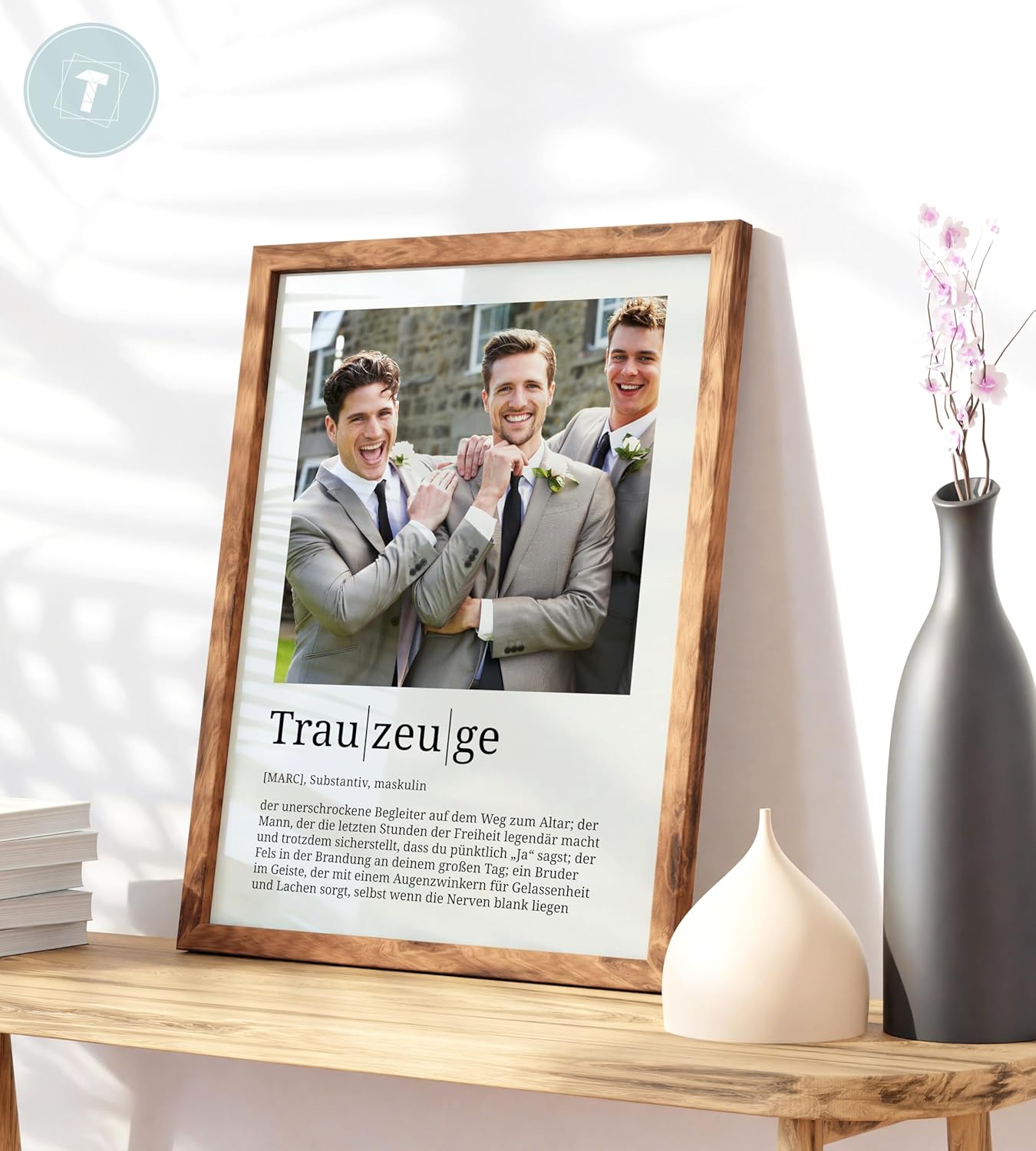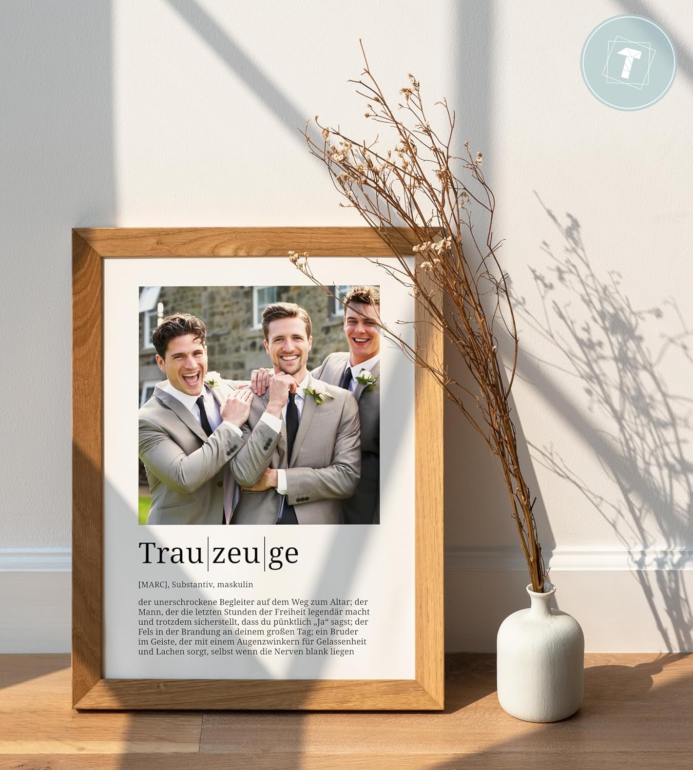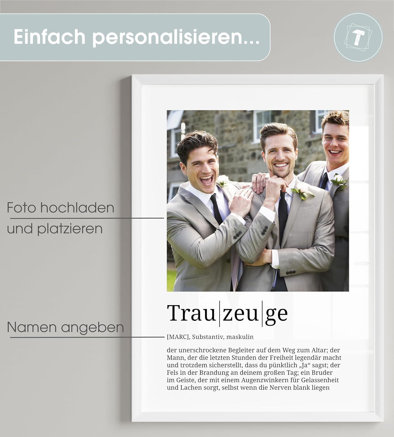 Papierschmiede® Персонализирани подаръци за кум/кум, сватба, кум, снимка в DIN A2 (59.4 x 42 см), избор на рамка, готова за рамкиране, подарък, персонална снимка за сватба, кум/кум, сватба