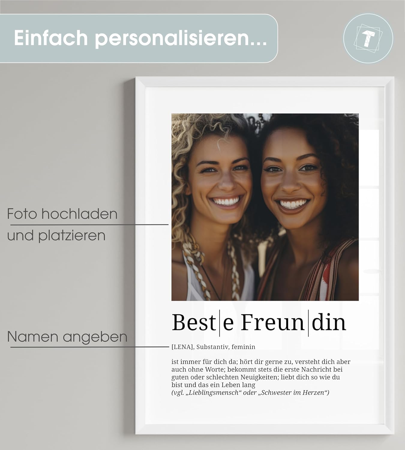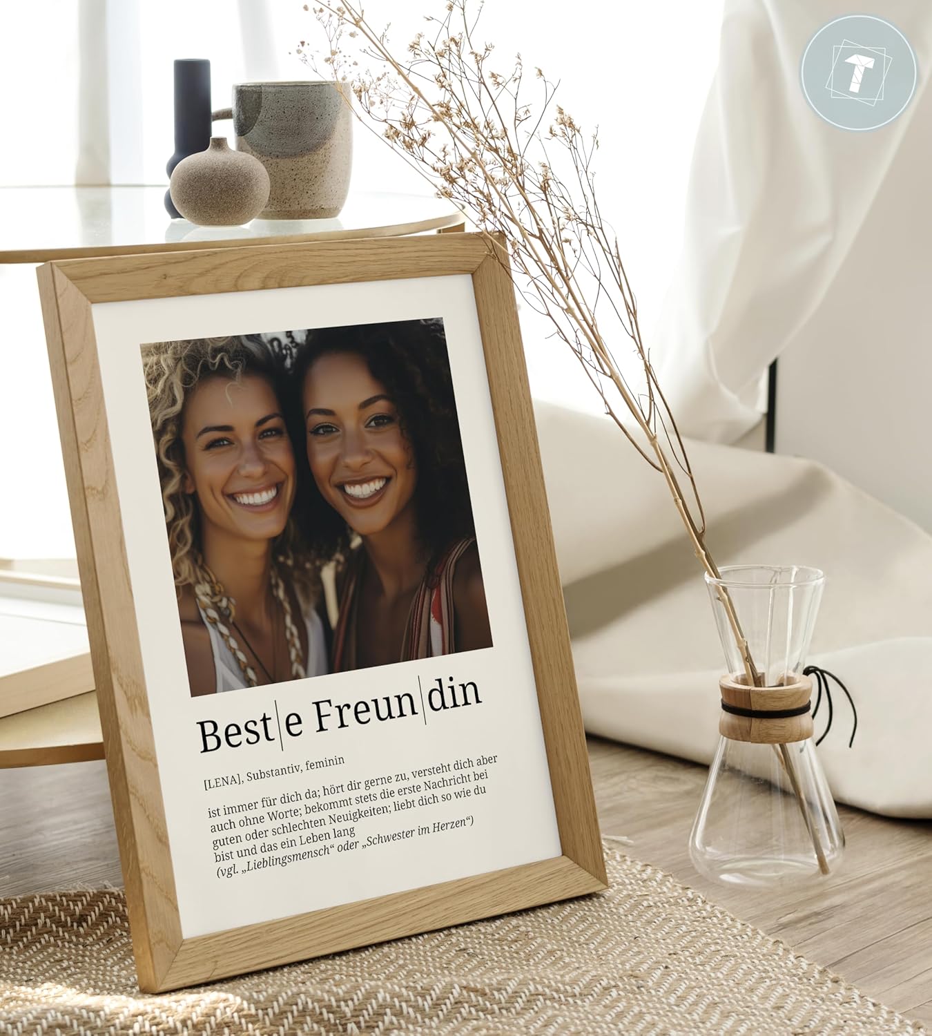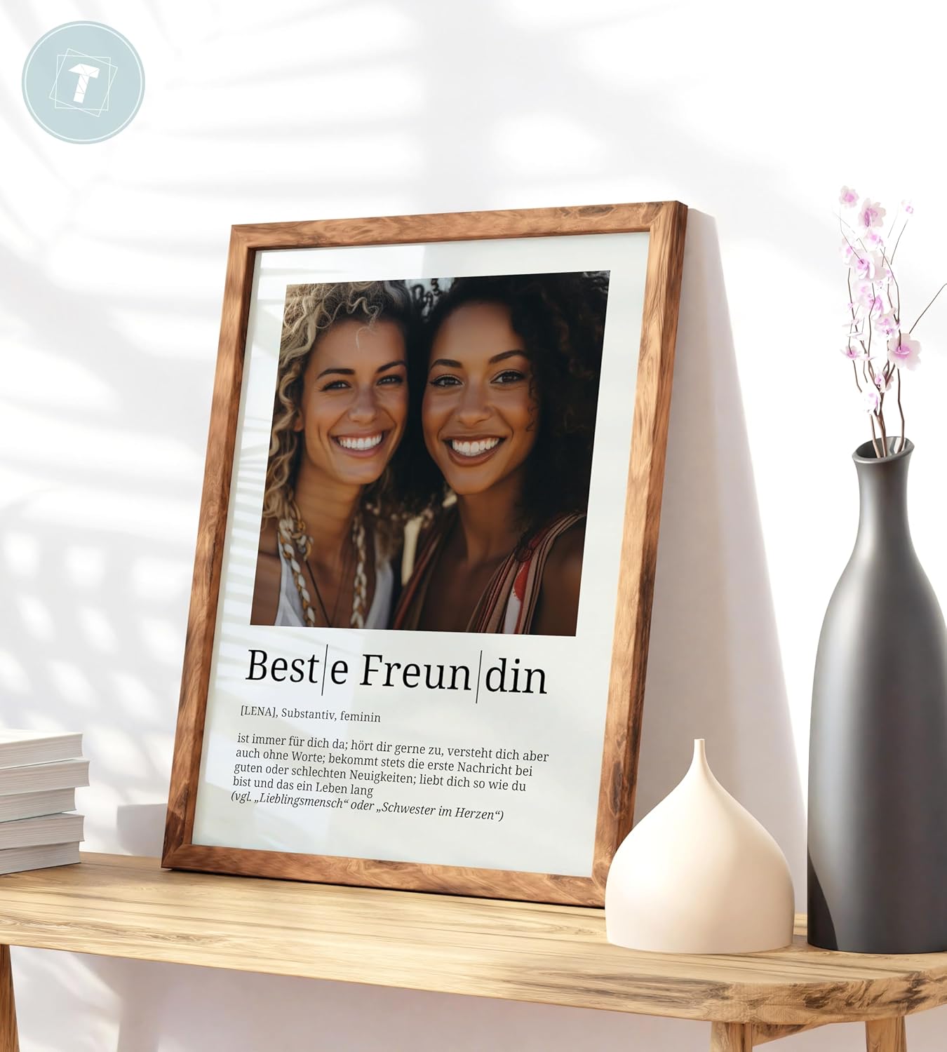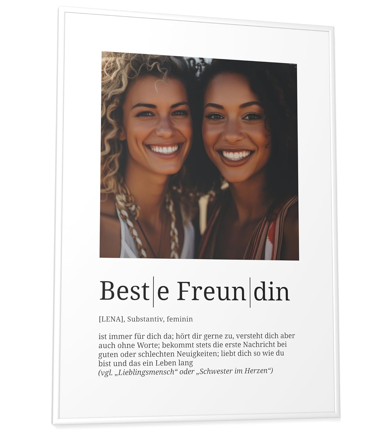 Papierschmiede® Подаръци за най-добър приятел Персонализирани със снимка и име DIN A2 (59,4 x 42 см) Рамка Избираема готова рамка Определение Лична снимка Подарък за Коледа, рожден ден