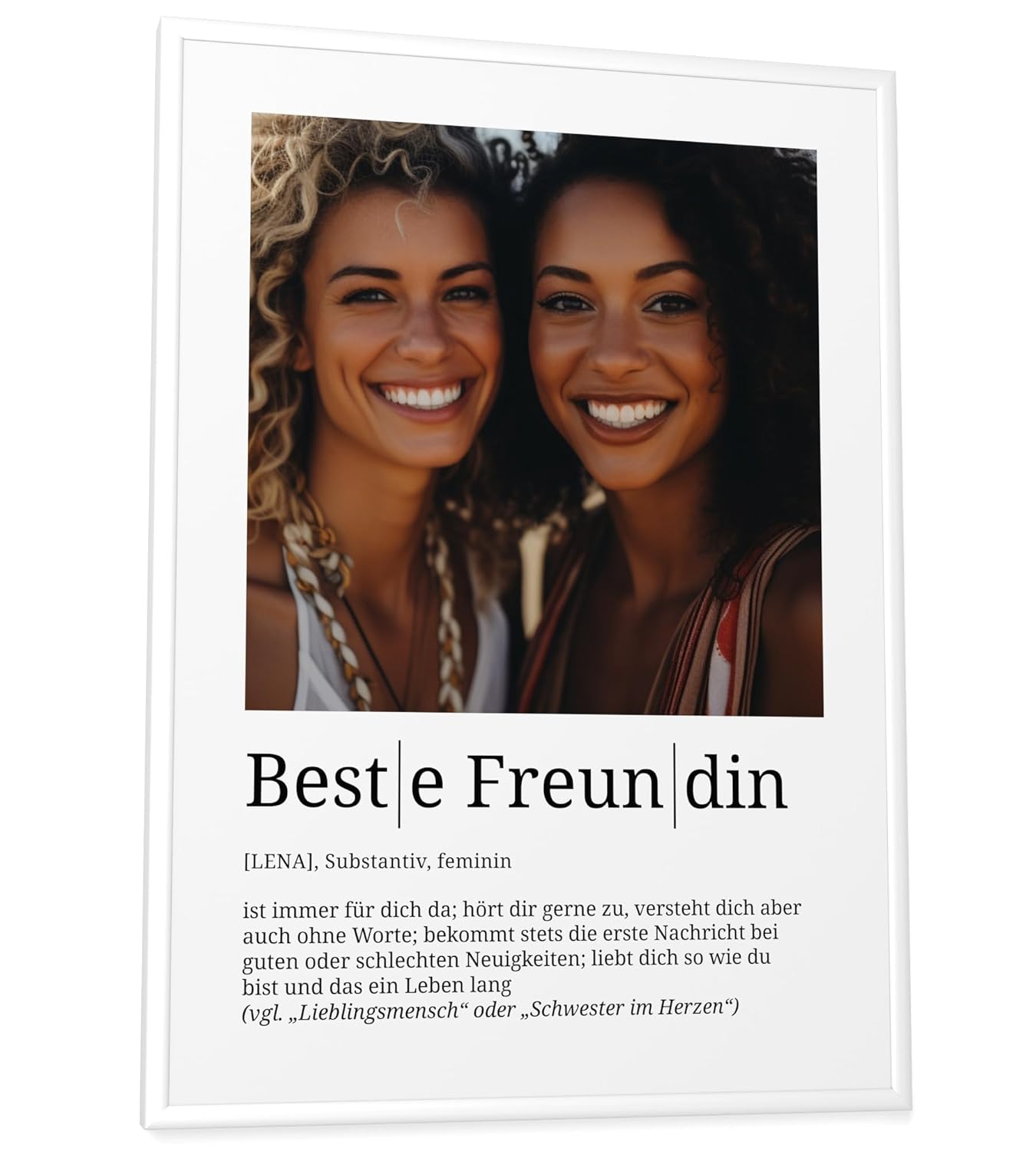 Papierschmiede® Подаръци за най-добър приятел Персонализирани със снимка и име DIN A4 (21 x 30 см) Рамка с избираема рамка Готова рамка Дефиниция Персонален подарък със снимка за Коледа, рожден ден