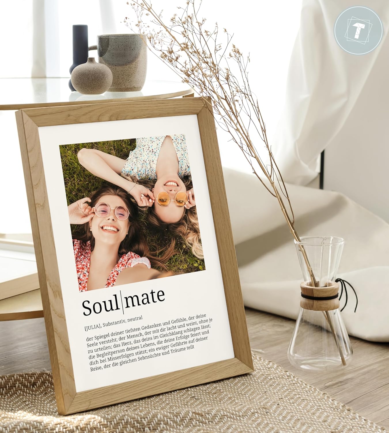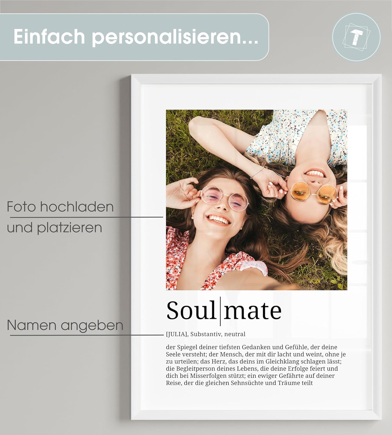 Papierschmiede® Подаръци за сродна душа Персонализирани със снимка и име DIN A3 (30 x 42 см) Рамка Избираема рамка Готова рамка Дефиниция Персонален подарък за снимка за Коледа, рожден ден