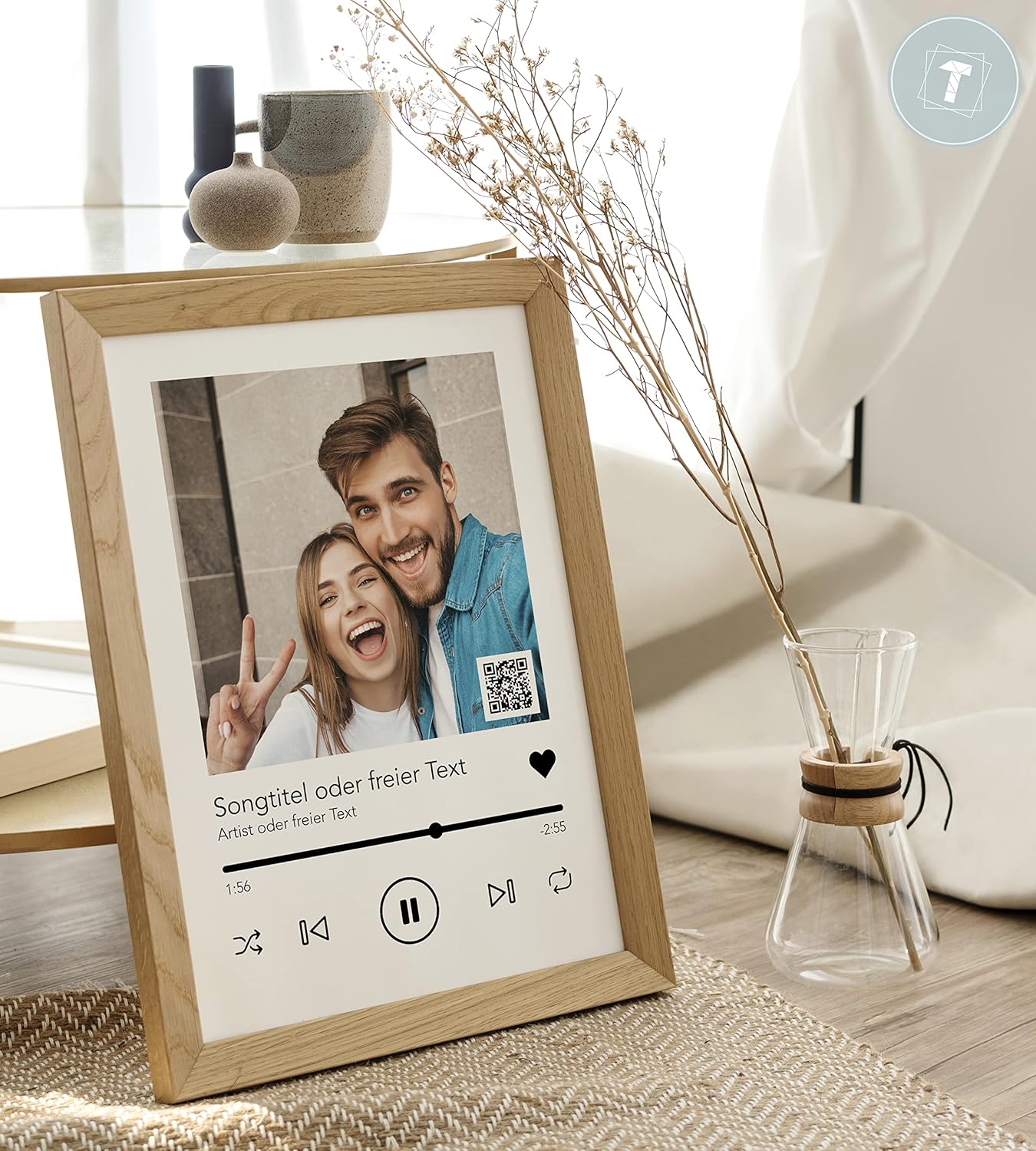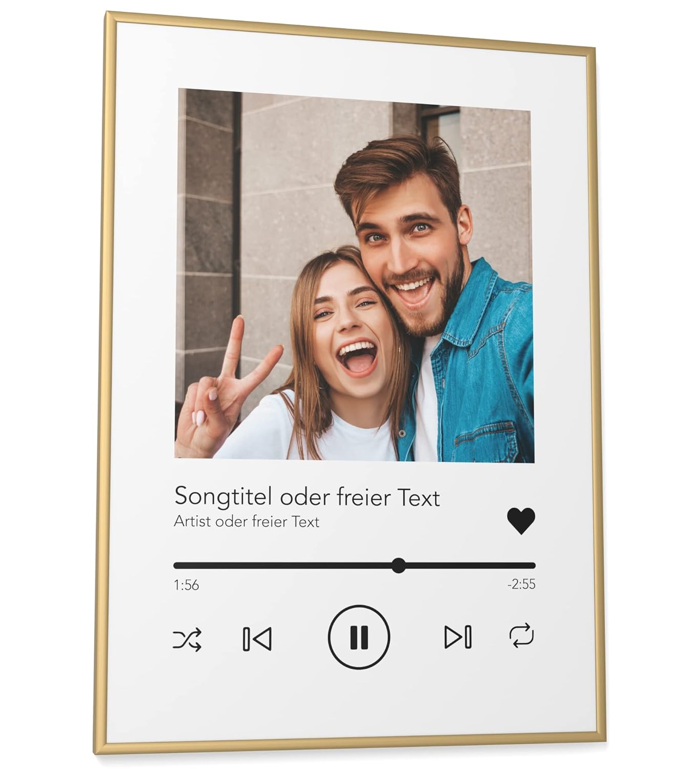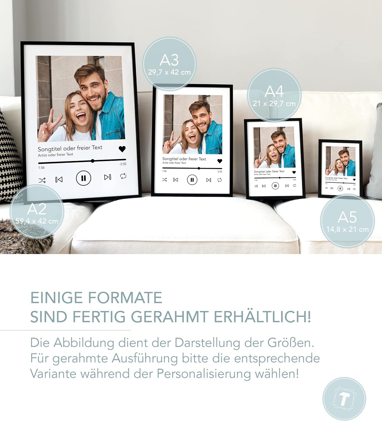Papierschmiede® Снимка като персонализирана снимка на обложка на песен, DIN A2 (рамка с избор), подарък за него и нея, годишнина от сватба, плакат за рожден ден, най-добри приятели, музикален албум, заглавие на изпълнител