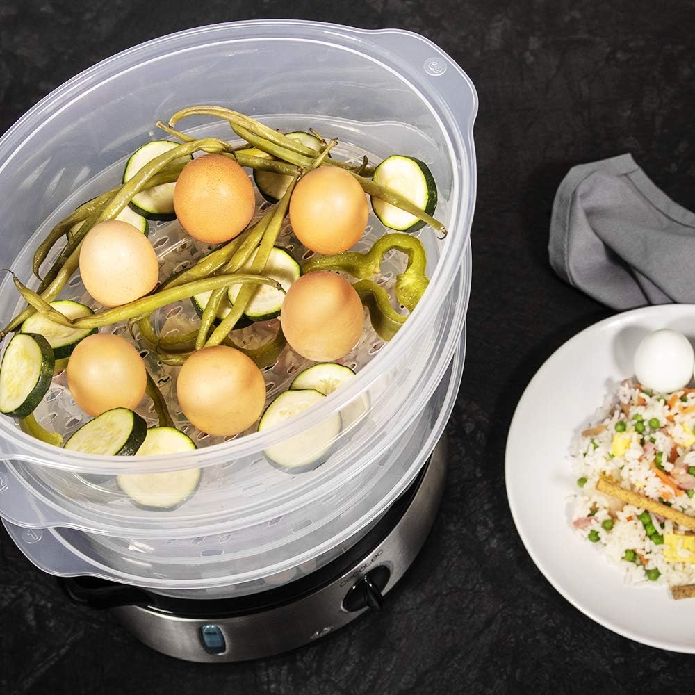 Параход Cecotec Vapovita 3000 INOX с мощност 800 W, 3 независими контейнера, купа за ориз, поставка за яйца, 60-минутен таймер. 2 странични водни връзки.