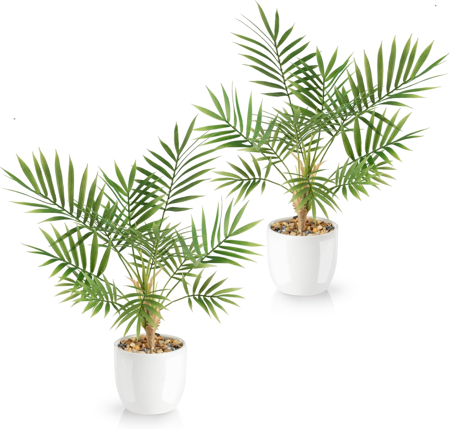• Истинска керамика – ние умишлено не използваме евтини пластмасови саксии с нашите изкуствени растения, защото само благодарение на елегантните керамични саксии с висок гланц, изкуствените саксийни растения изглеждат естествено и елегантно. Яркото бяло на саксиите подчертава освежаващите зелени цветове на изкуствените растения и изкуствените палми.