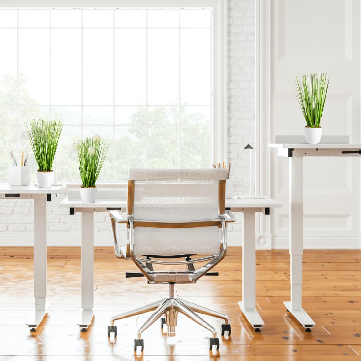 PASCH 3 x Изкуствена трева в бяла керамична саксия (31 см): Изкуствени треви | Изкуствена трева | Изкуствена растителна трева | Декоративна трева | Изкуствени растения като истински | Изкуствени растения в саксия (вариация на декоративна трева)