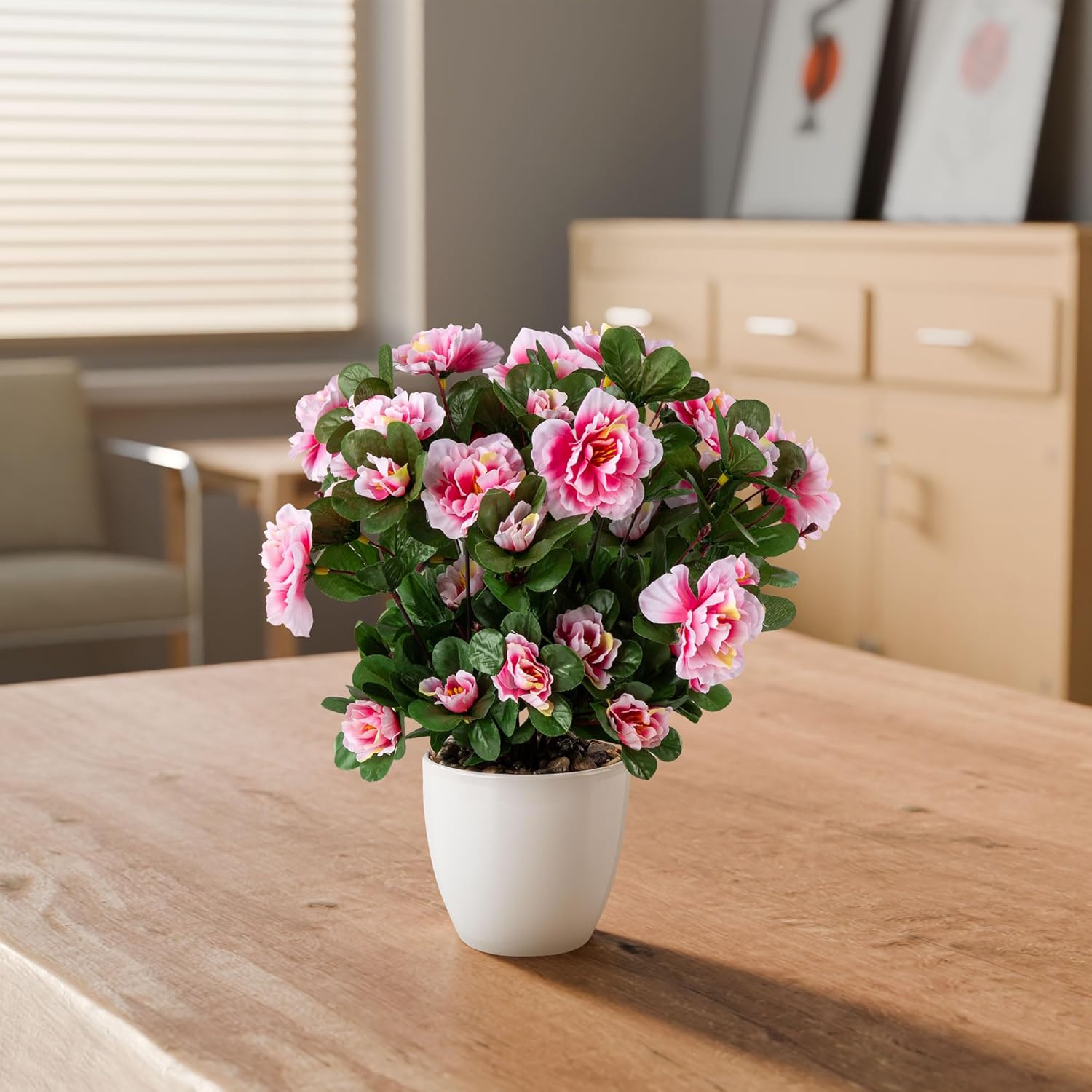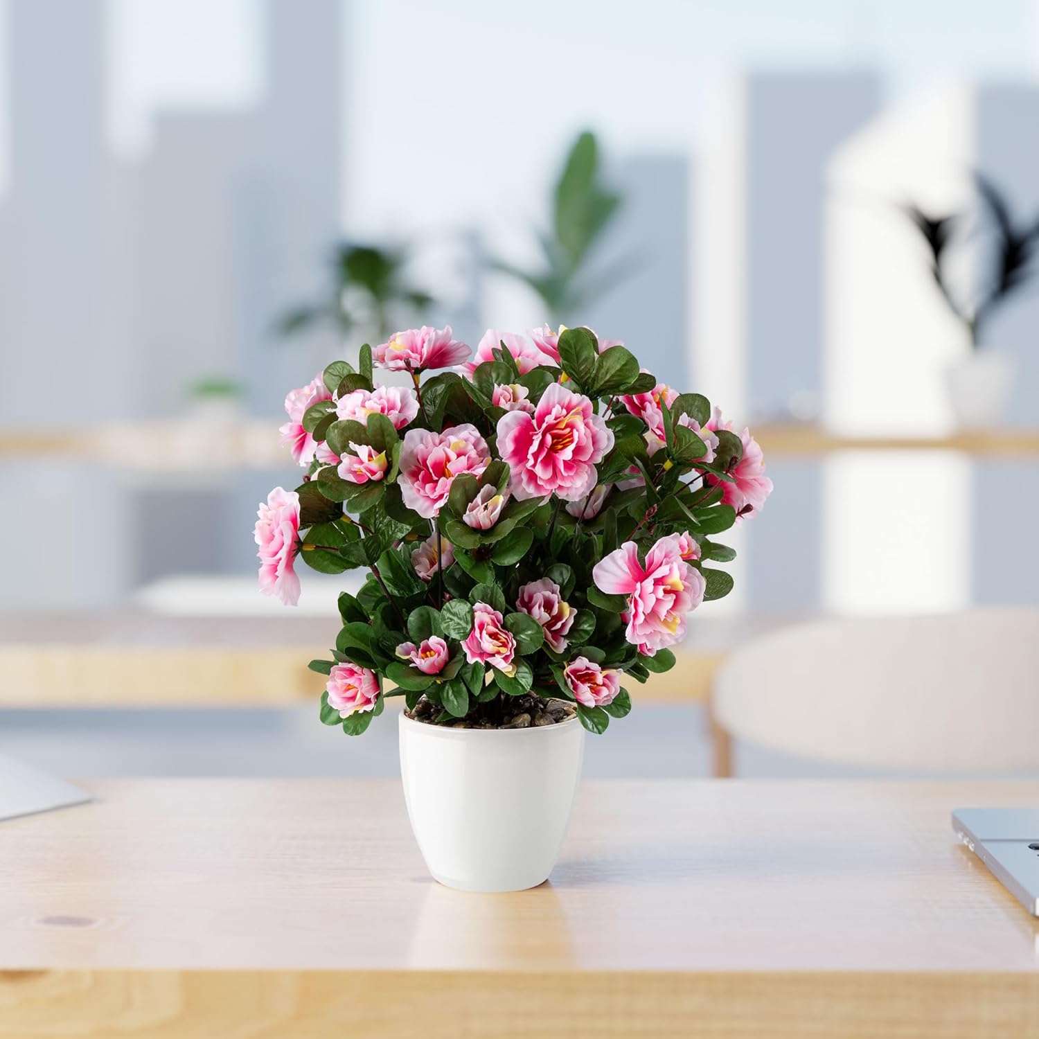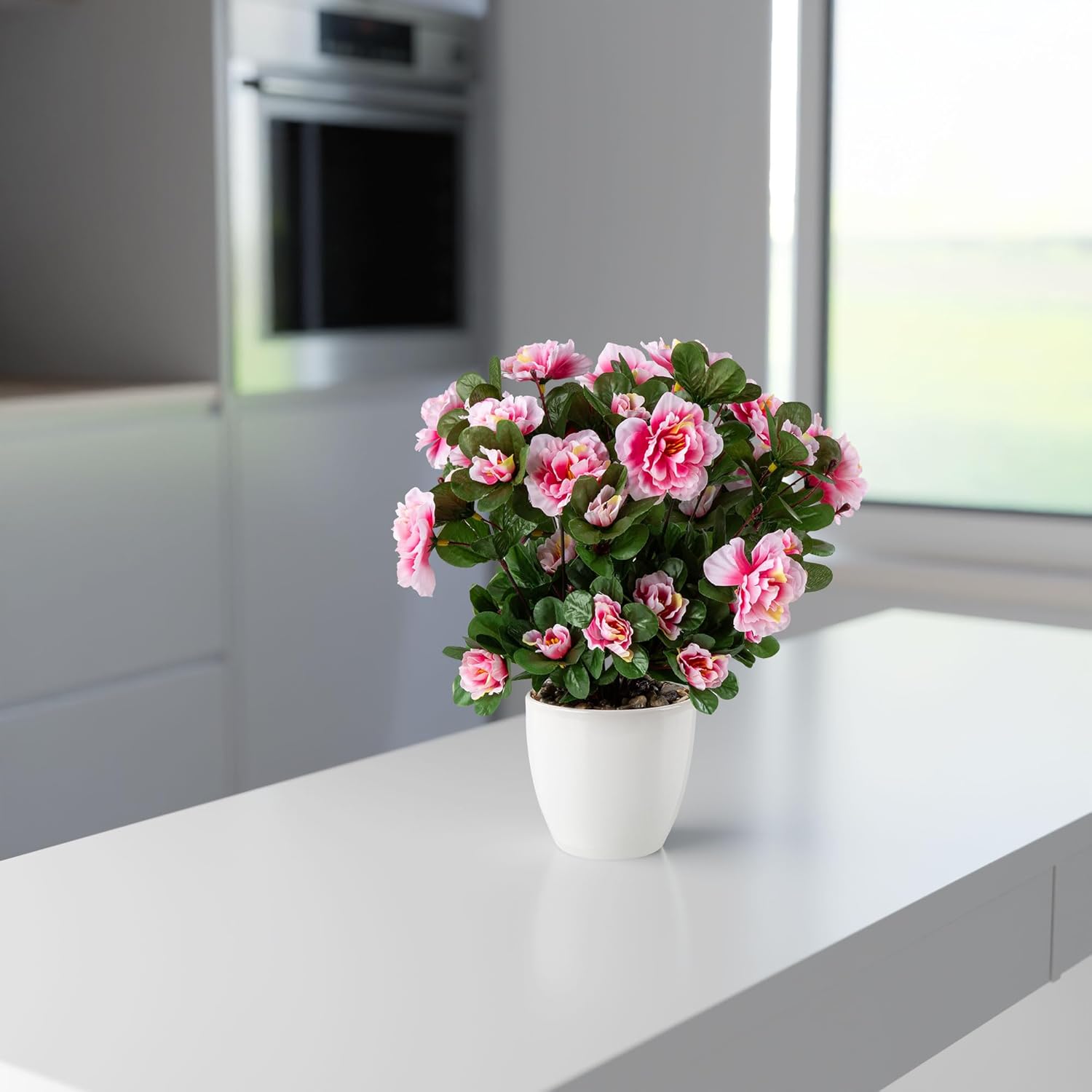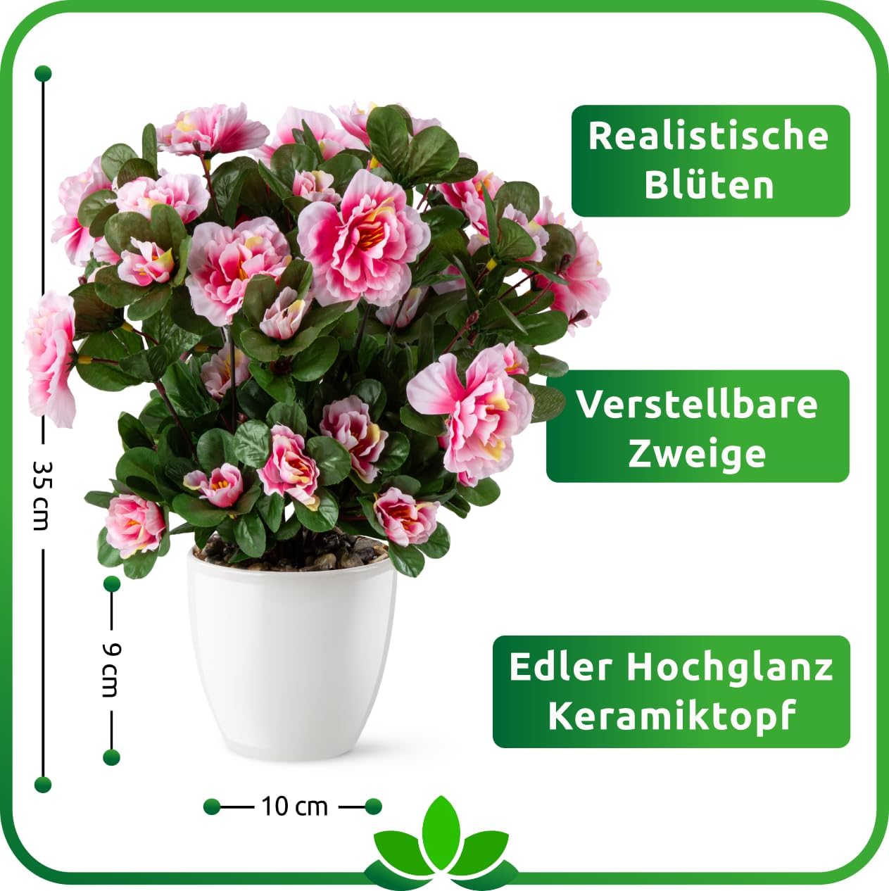 PASCH Азалия в керамична саксия с висок гланц, Изкуствени цветя в саксия, Изкуствени цветя като истински, Фалшиви цветя, Изкуствени цветя като истински (Розово, 35 см)