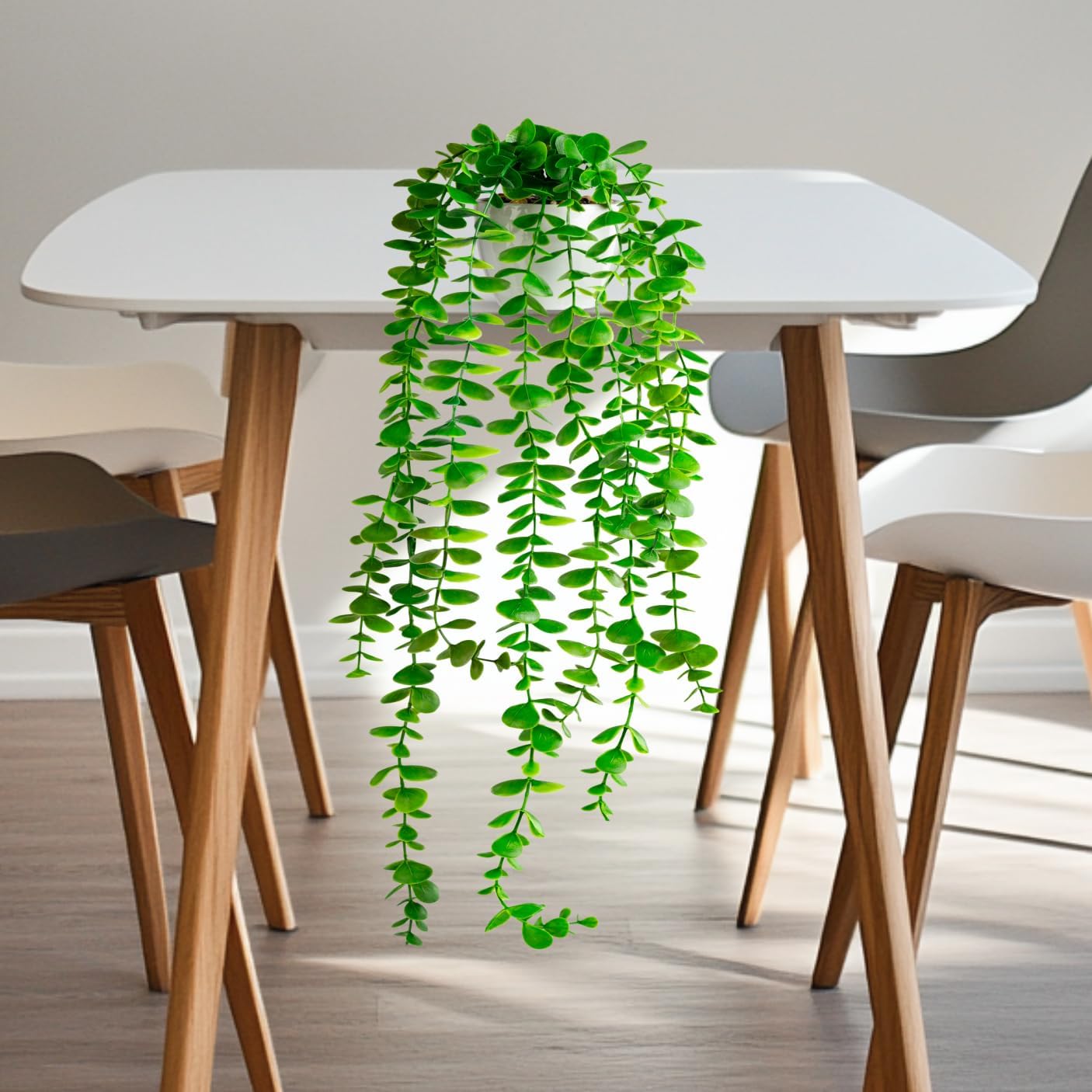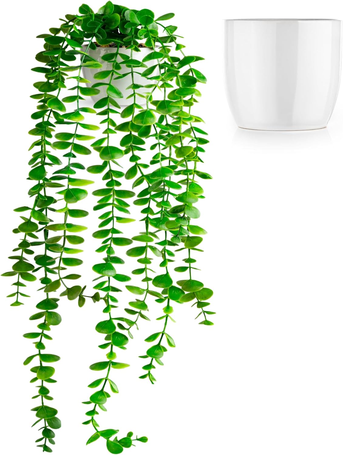 PASCH® Изкуствен евкалипт (60 см) в бяла керамична саксия: Изкуствени висящи растения | Изкуствени растения като истински | Висящи изкуствени растения | Изкуствено растение, висящо в саксия | Висящо растение