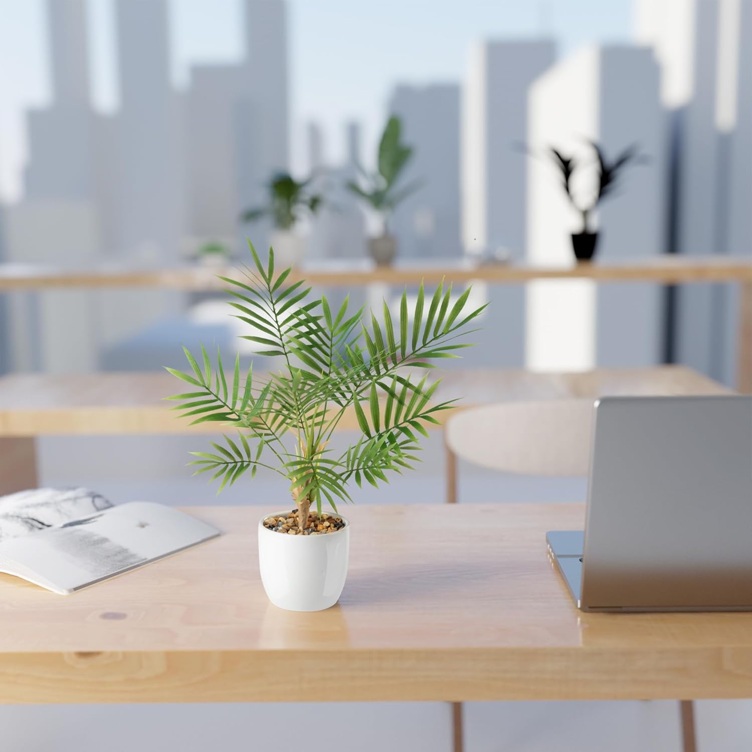 • Истинска керамика – ние умишлено не използваме евтини пластмасови саксии с нашите изкуствени растения, защото само благодарение на елегантните керамични саксии с висок гланц, изкуствените саксийни растения изглеждат естествено и елегантно. Яркото бяло на саксиите подчертава освежаващите зелени цветове на изкуствените растения и изкуствените палми.