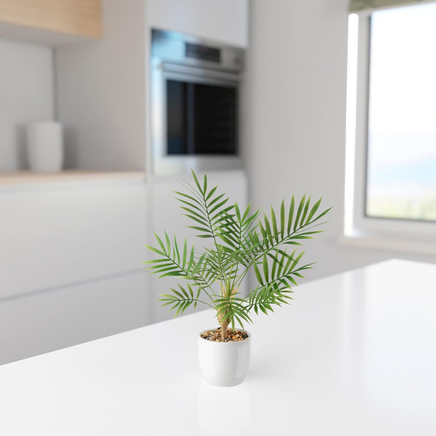 PASCH® Изкуствена палма Арека (35 см) в бяла керамична саксия: Изкуствени растения като истински | Изкуствени растения в саксия | Фалшиво растение | Изкуствена палма | Изкуствени цветя в саксия | Малка