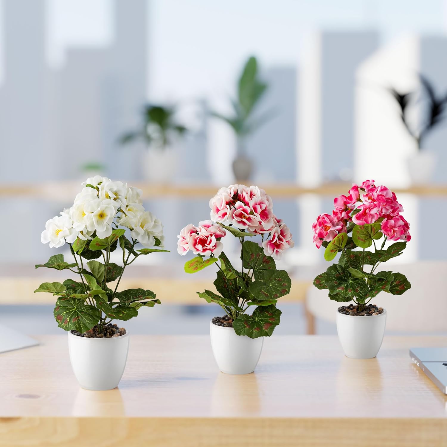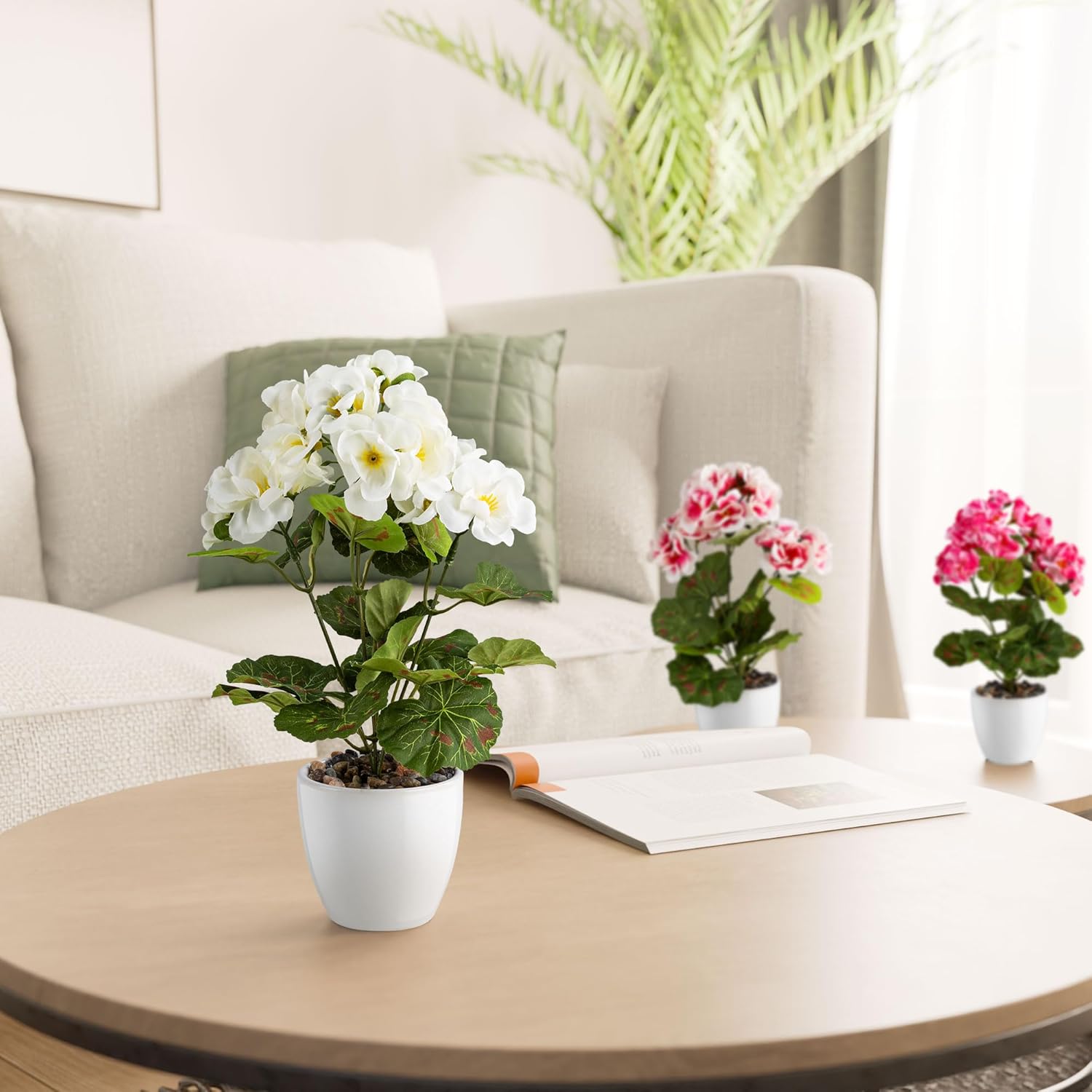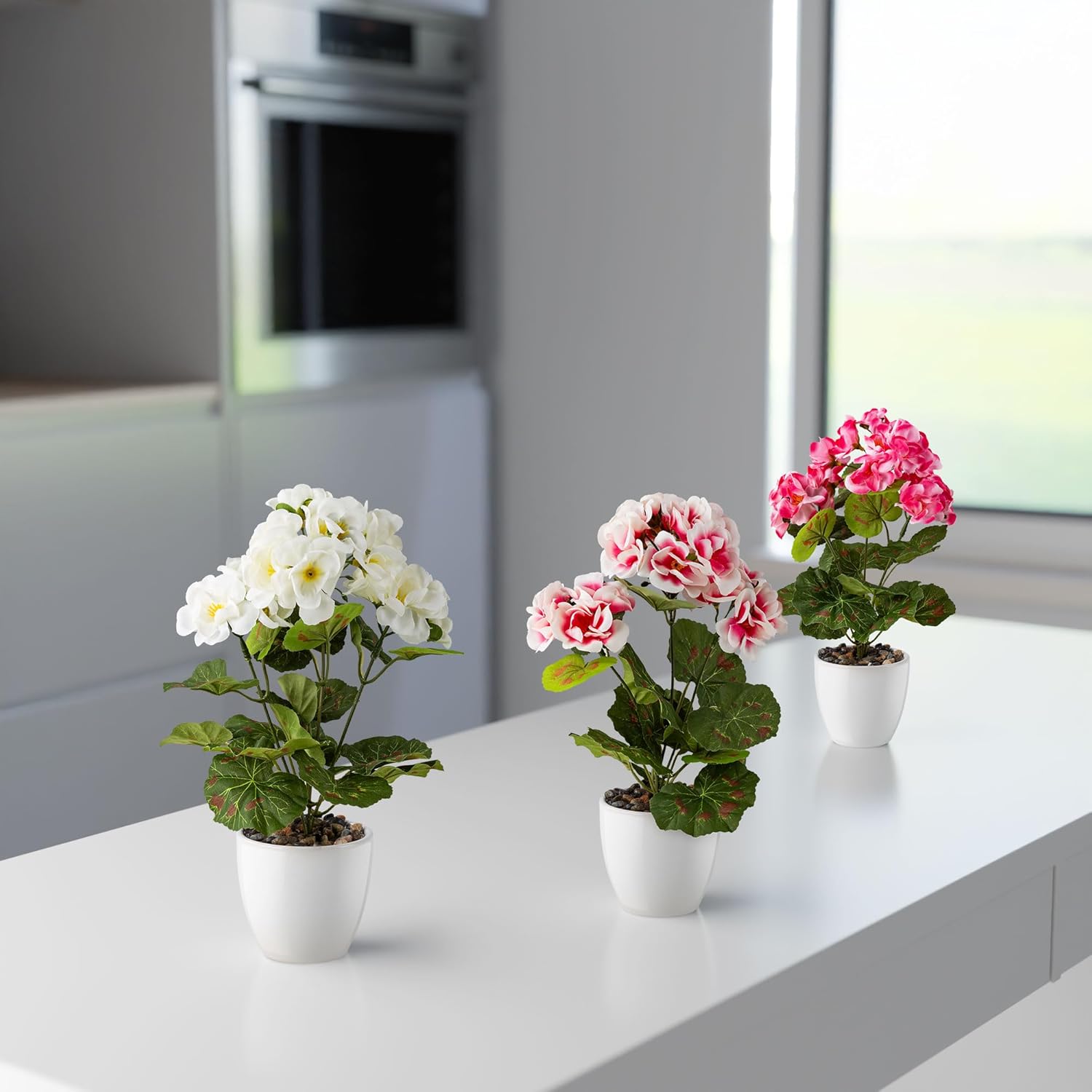 PASCH Изкуствени мушката в керамична саксия с висок гланц, Изкуствени цветя в саксия, Изкуствени цветя като истински, Фалшиви цветя, Изкуствени цветя като истински (Игра на цветове, пакет от 3, 25 см)