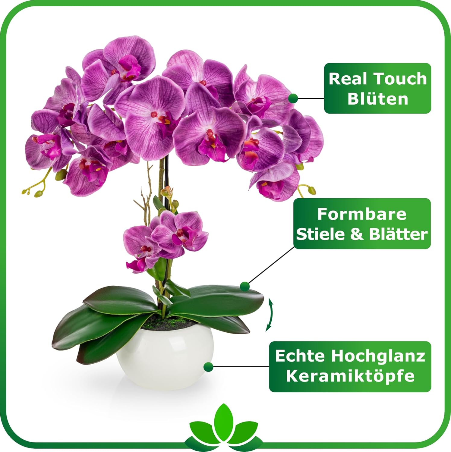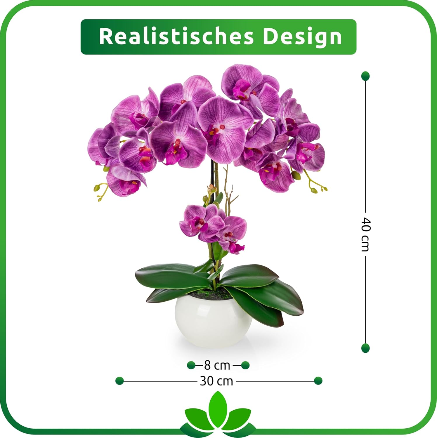 PASCH Изкуствени орхидеи в гланцирана керамична саксия (40 см) Изкуствени цветя като истинска изкуствена орхидея