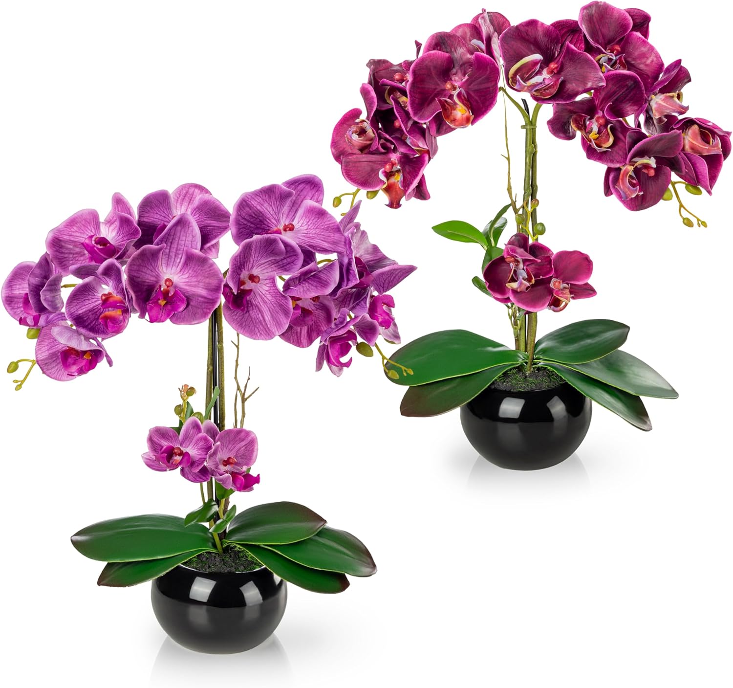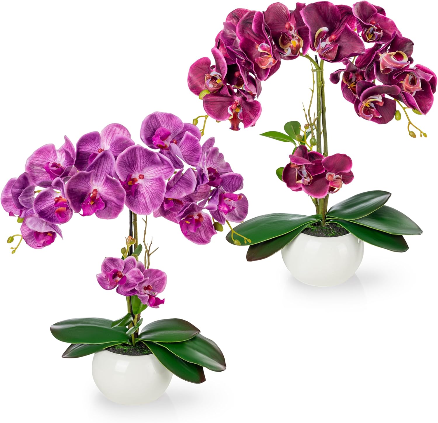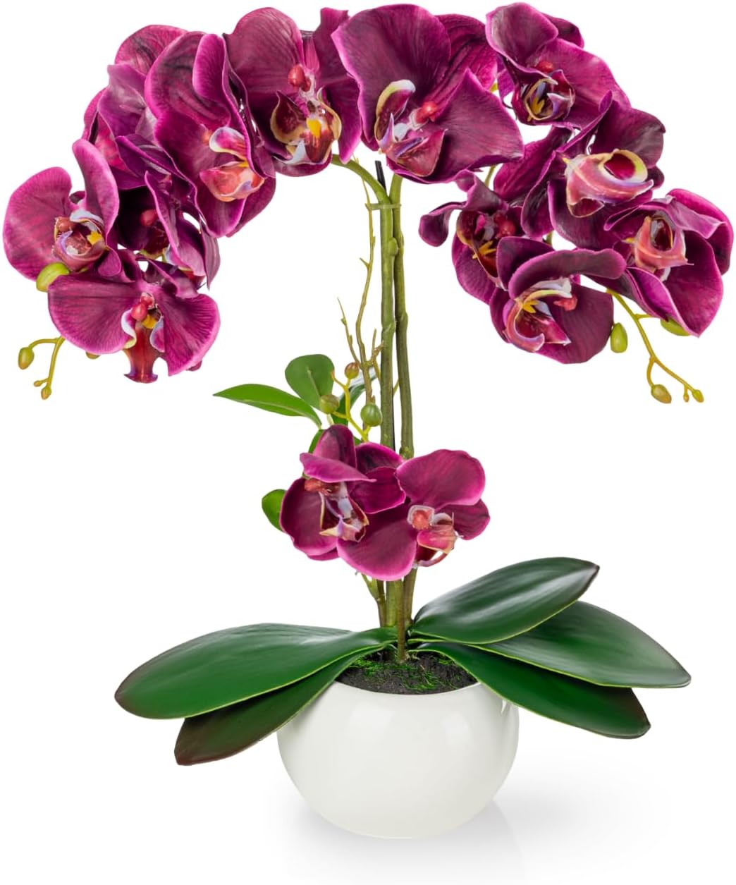 PASCH Изкуствени орхидеи в керамична саксия с висок гланц (40 см) | Изкуствени цветя в саксия | Изкуствени цветя като истински | Изкуствени орхидеи в саксия | Изкуствени цветя в саксия | Изкуствено цвете орхидея