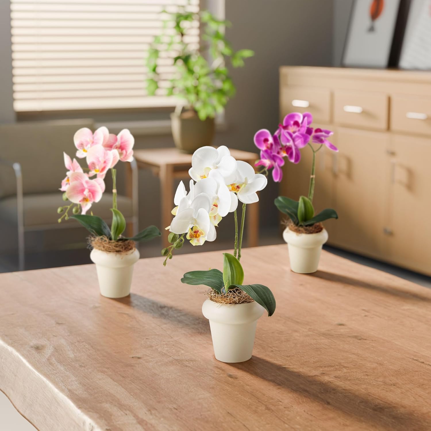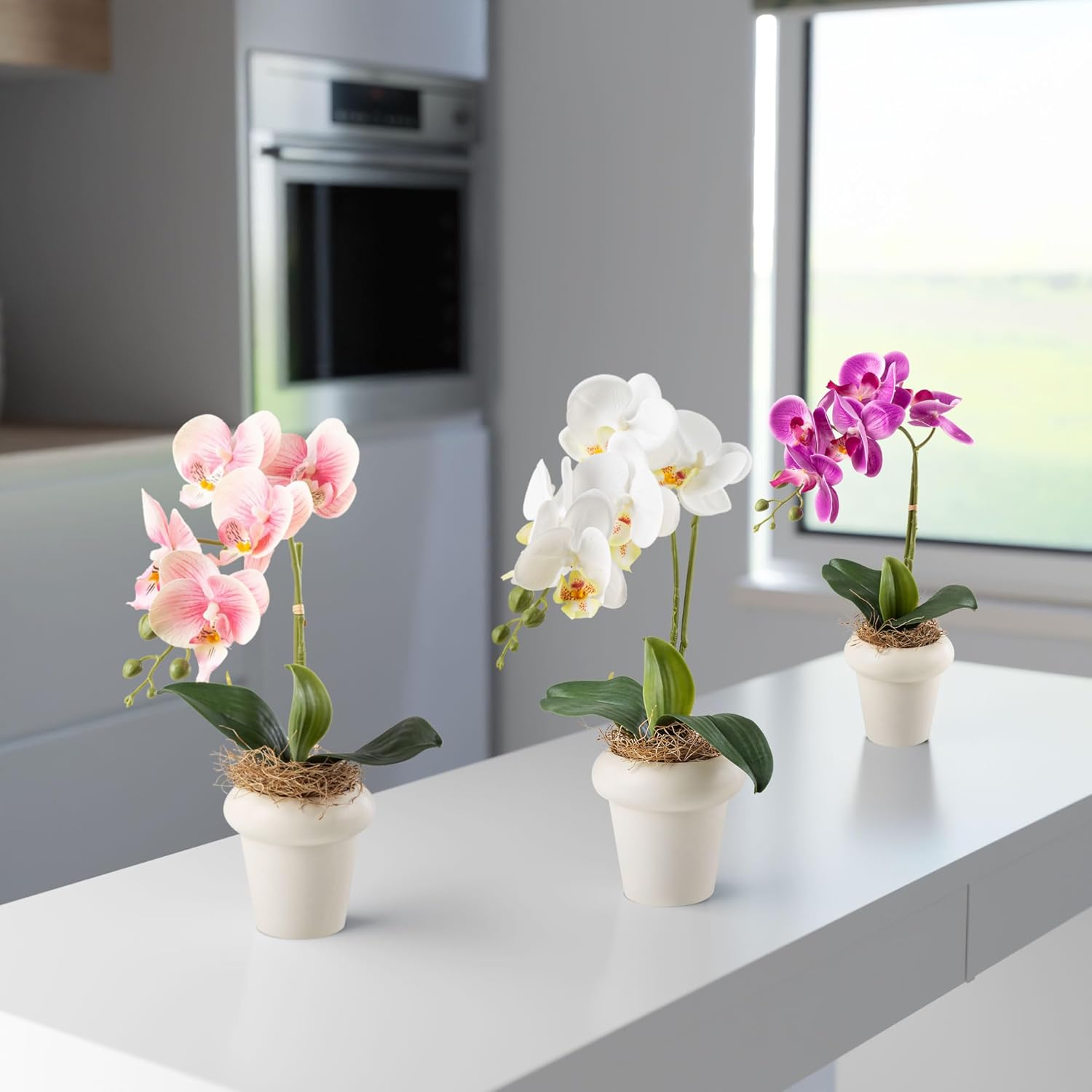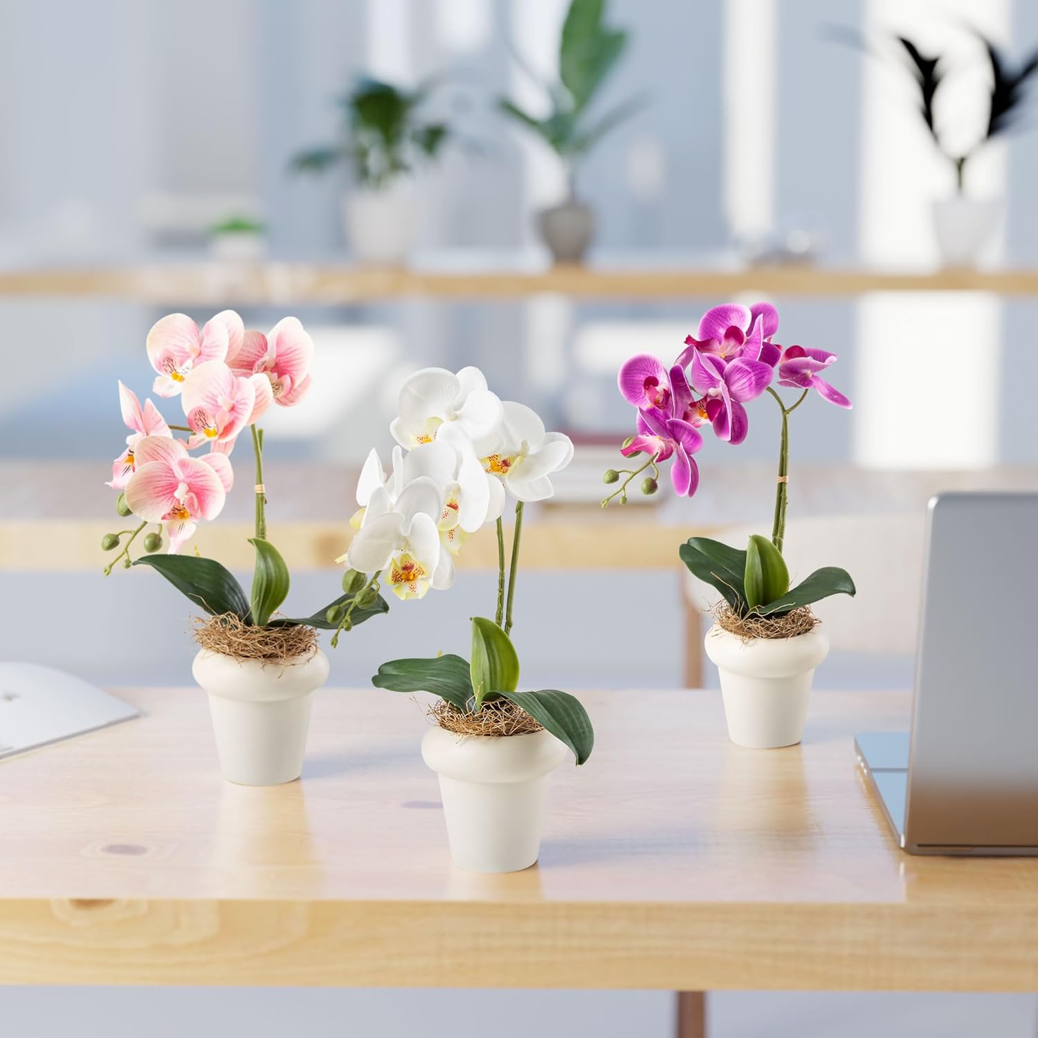 PASCH Изкуствени орхидеи в керамични саксии с висок гланц (36 см) | Изкуствени цветя в саксия | Изкуствени цветя като истински | Изкуствени орхидеи в саксия (Комплект от 3)