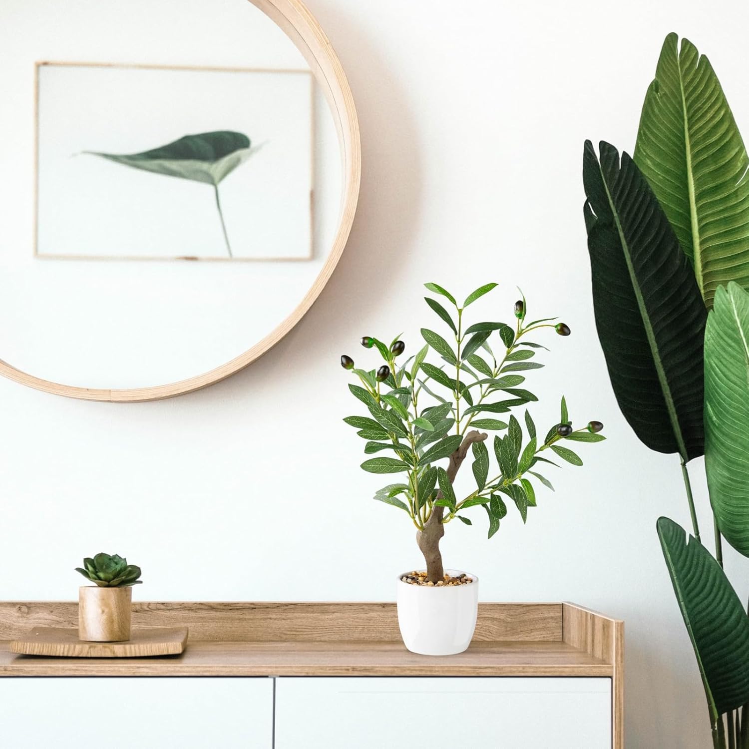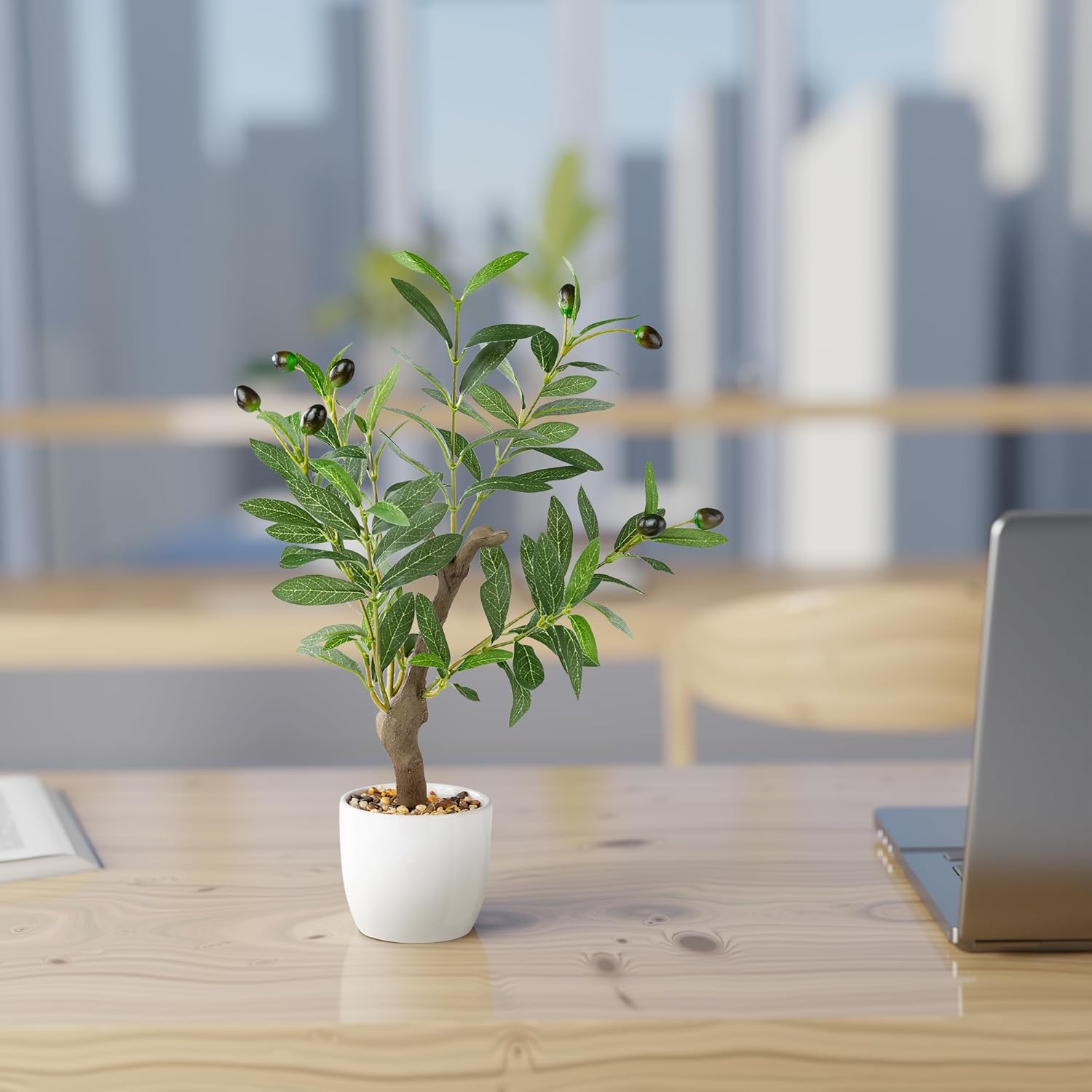 PASCH Изкуствено маслиново дърво (42 см) в бяла керамична саксия: Изкуствени растения като истински | Изкуствени растения в саксия | Изкуствено растение: Маслиново дърво | Изкуствено маслиново дърво | Малко изкуствено | Изкуствени цветя в саксия