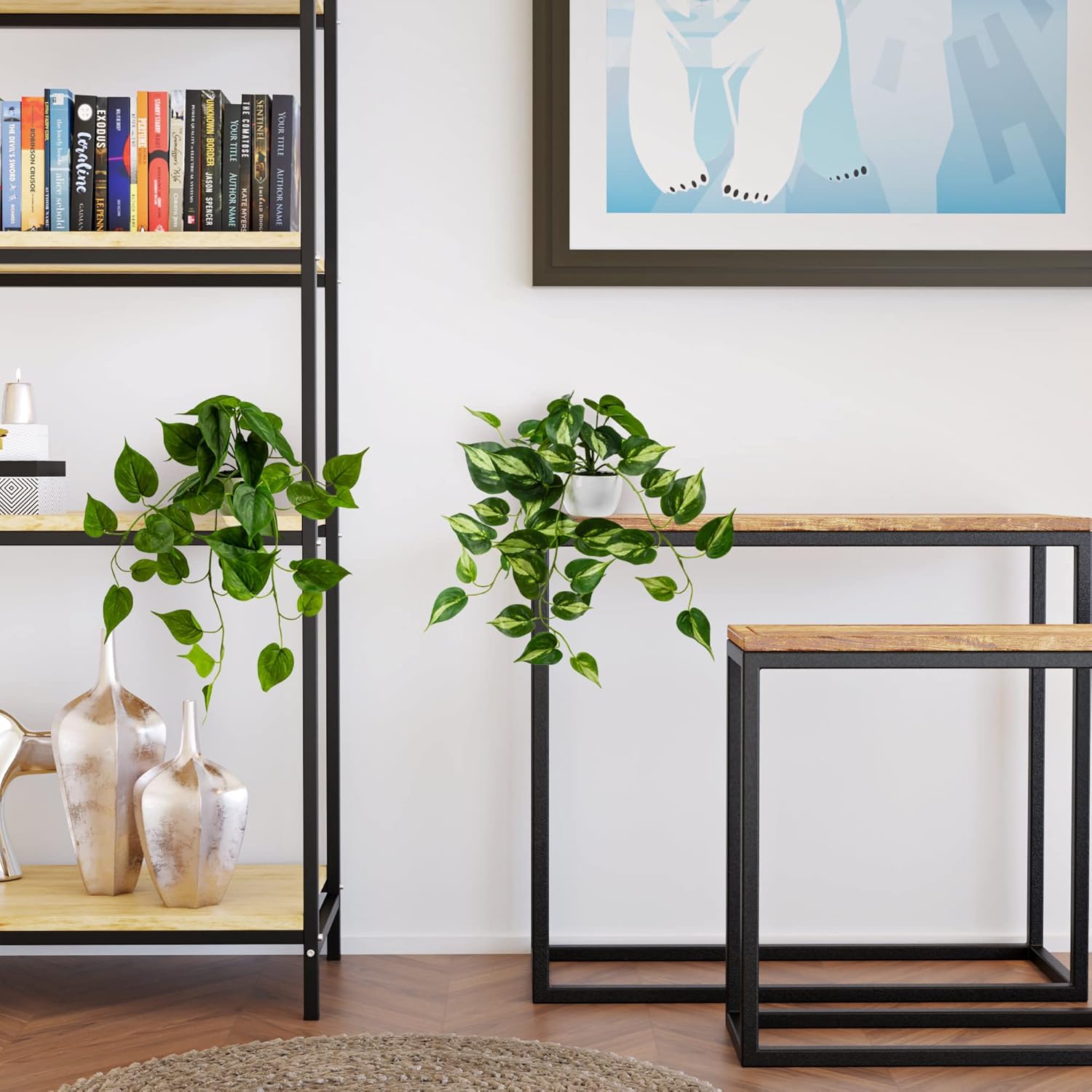 • Поставката – изкуствените висящи растения в саксия са подходящи за всяка област от живота: като декоративна украса за хол, баня, спалня или офис в слабо осветена среда. Където истинските растения са трудни за отглеждане, изкуствените растения изпълват стаята с приятни цветове.
