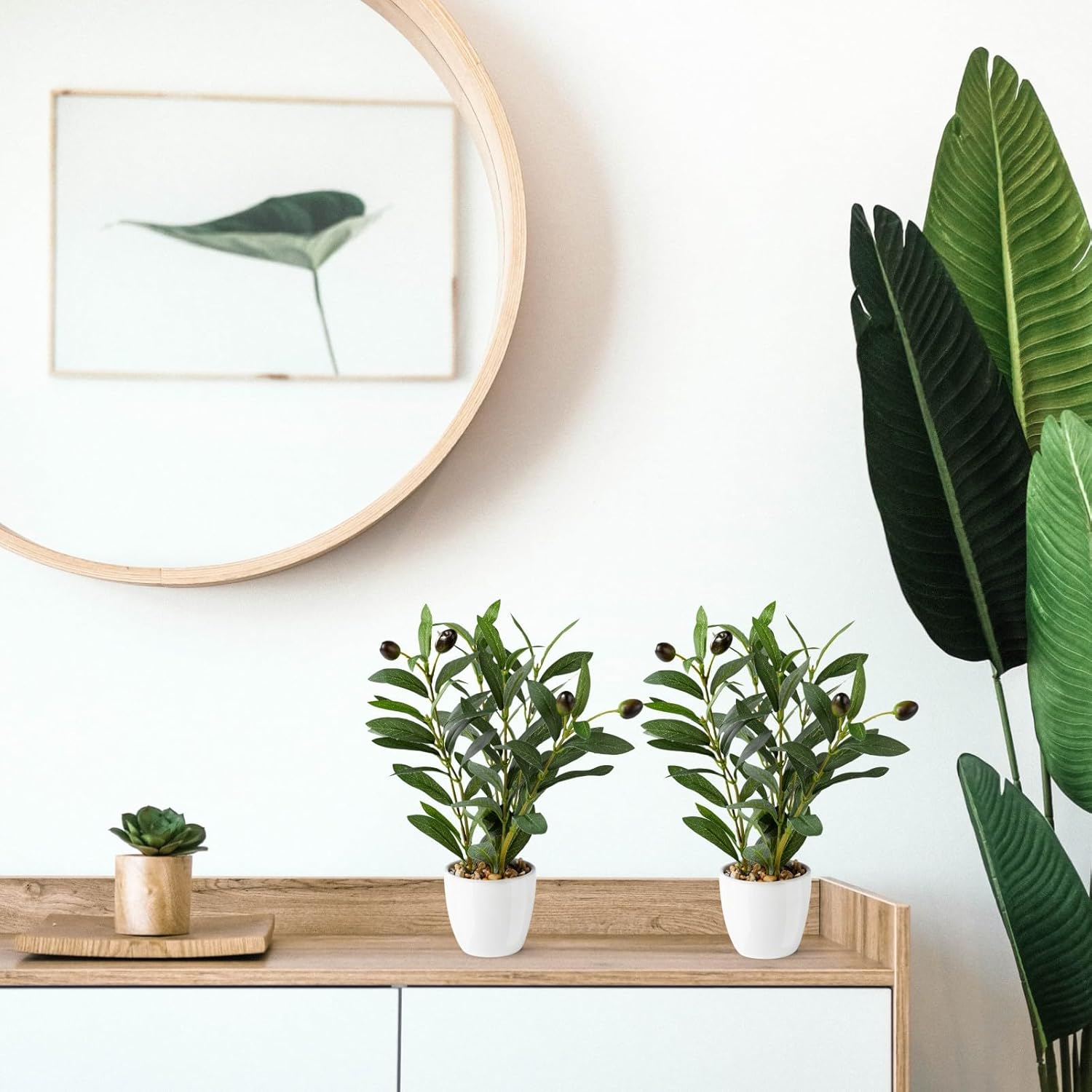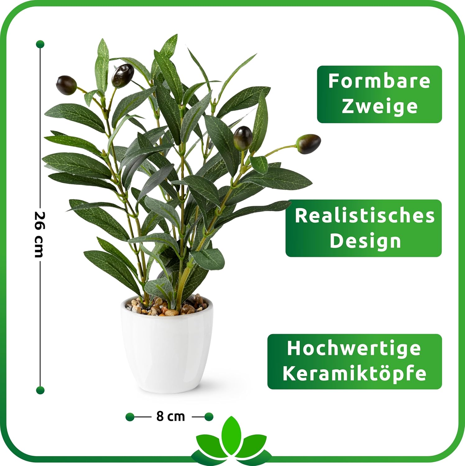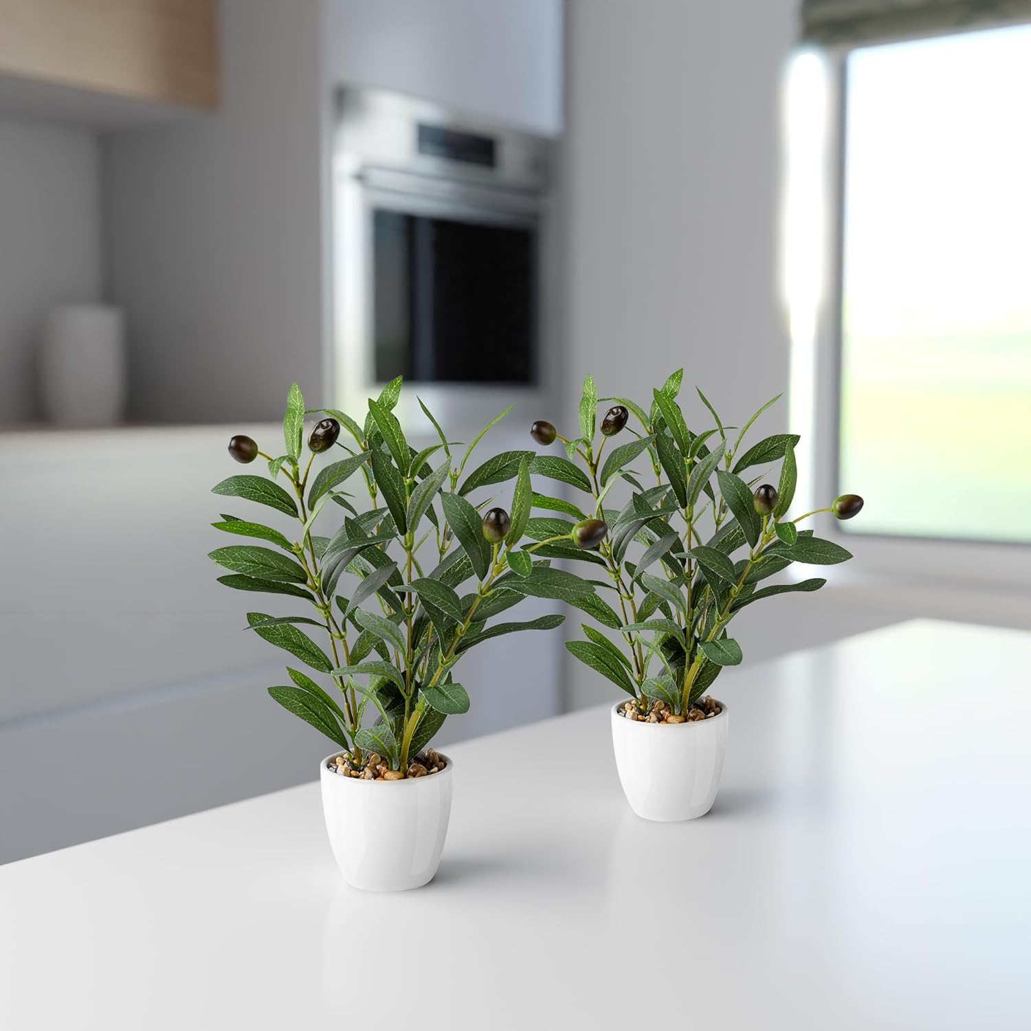 PASCH® Комплект от 2 изкуствени маслинови дръвчета (26 см) в бели керамични саксии: Изкуствени растения като истински | Изкуствени растения в саксия | Изкуствено растение: Маслиново дърво | Малко изкуствено маслиново дърво | Изкуствени цветя