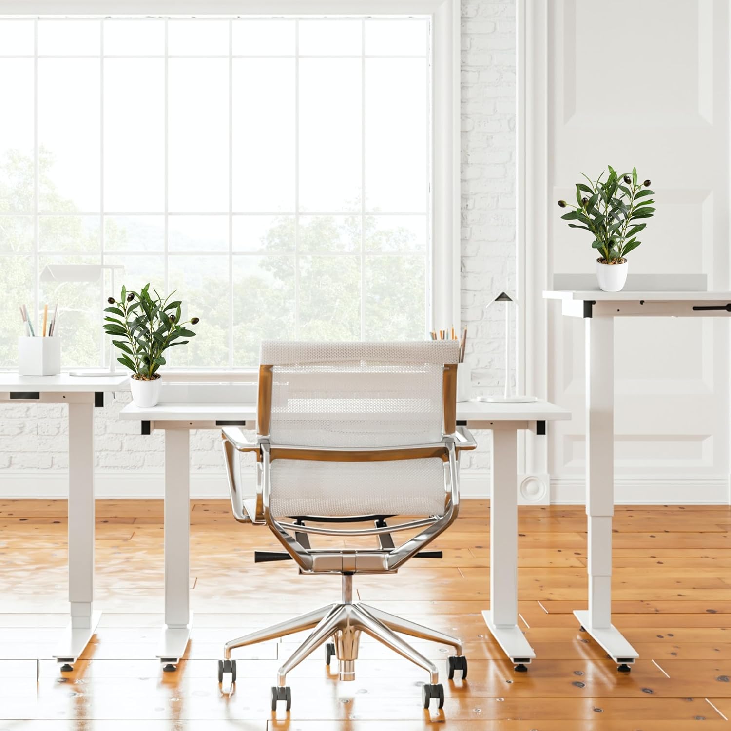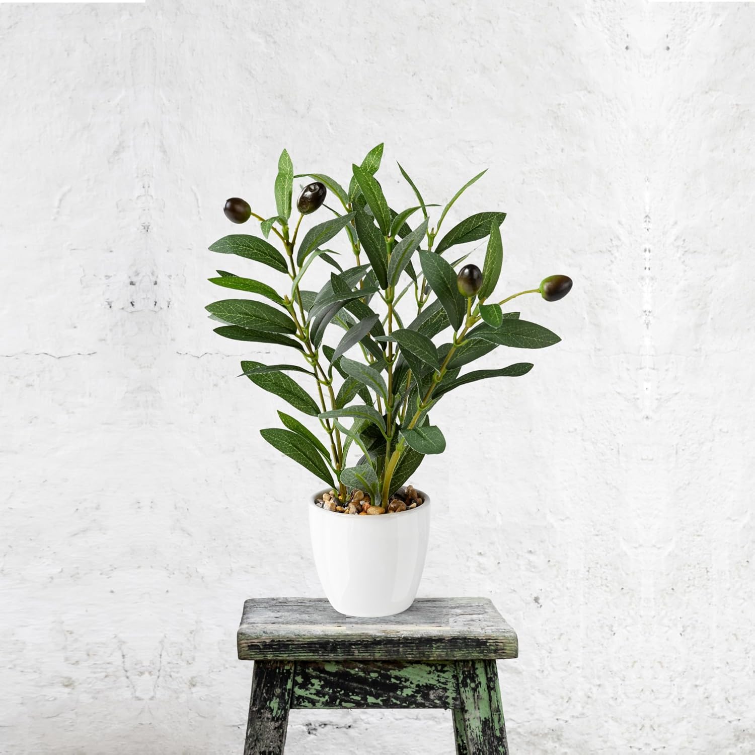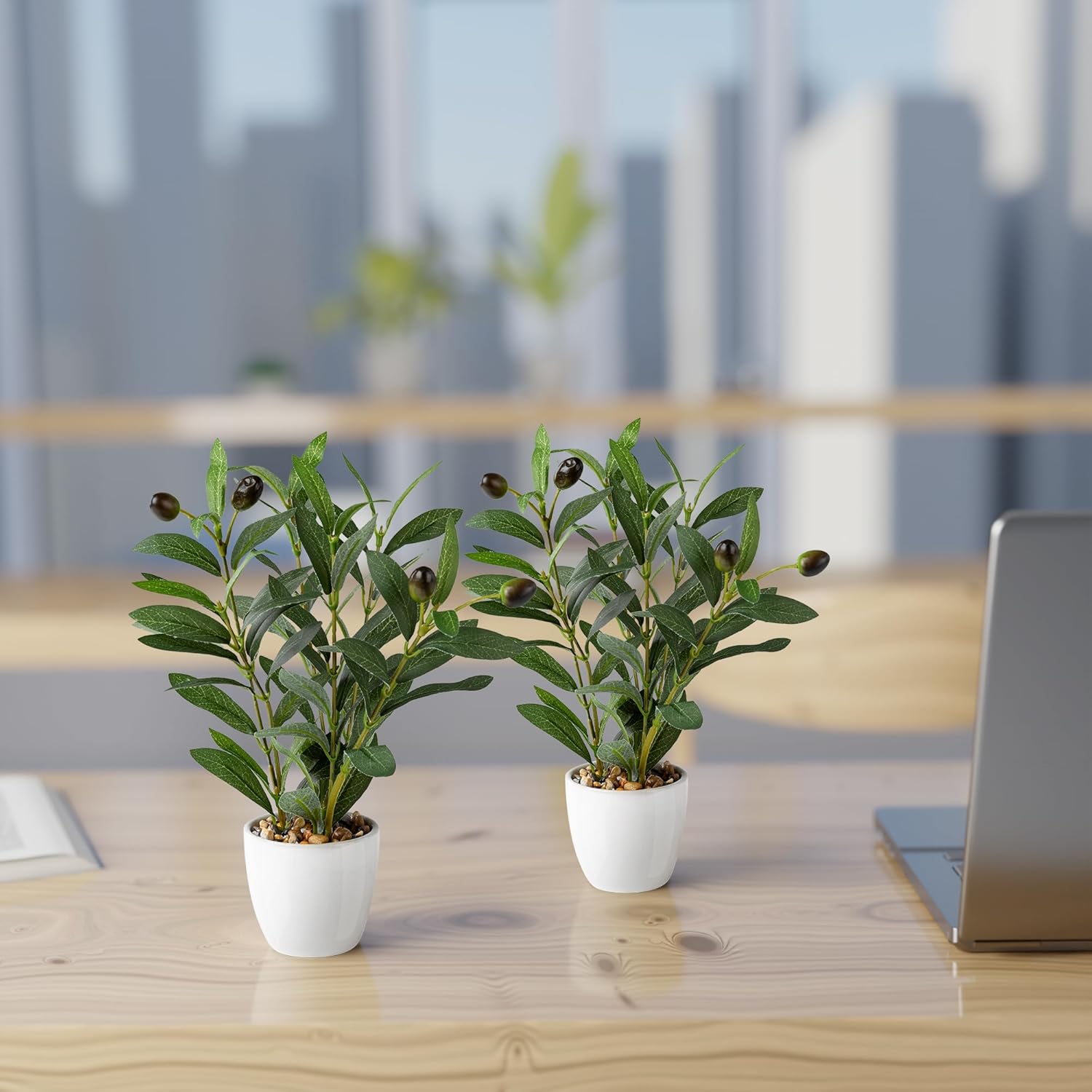 PASCH® Комплект от 2 изкуствени маслинови дръвчета (26 см) в бели керамични саксии: Изкуствени растения като истински | Изкуствени растения в саксия | Изкуствено растение: Маслиново дърво | Малко изкуствено маслиново дърво | Изкуствени цветя