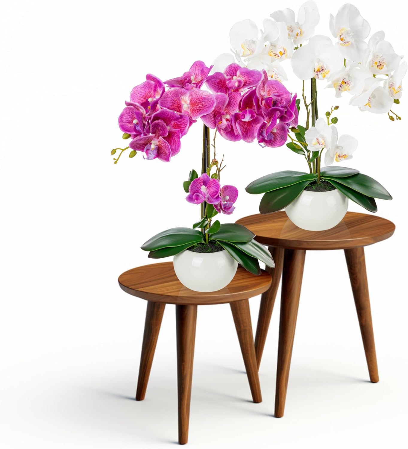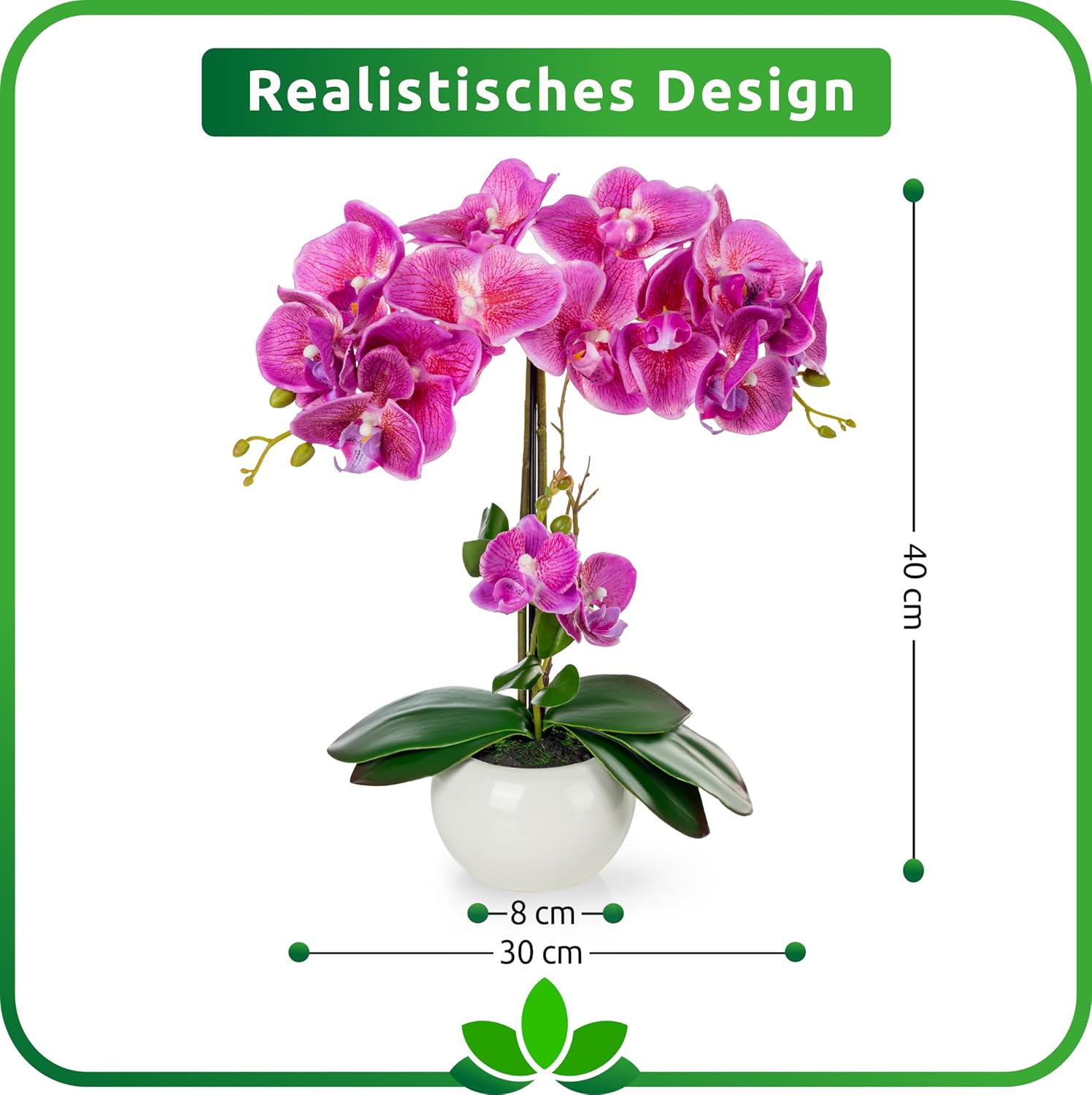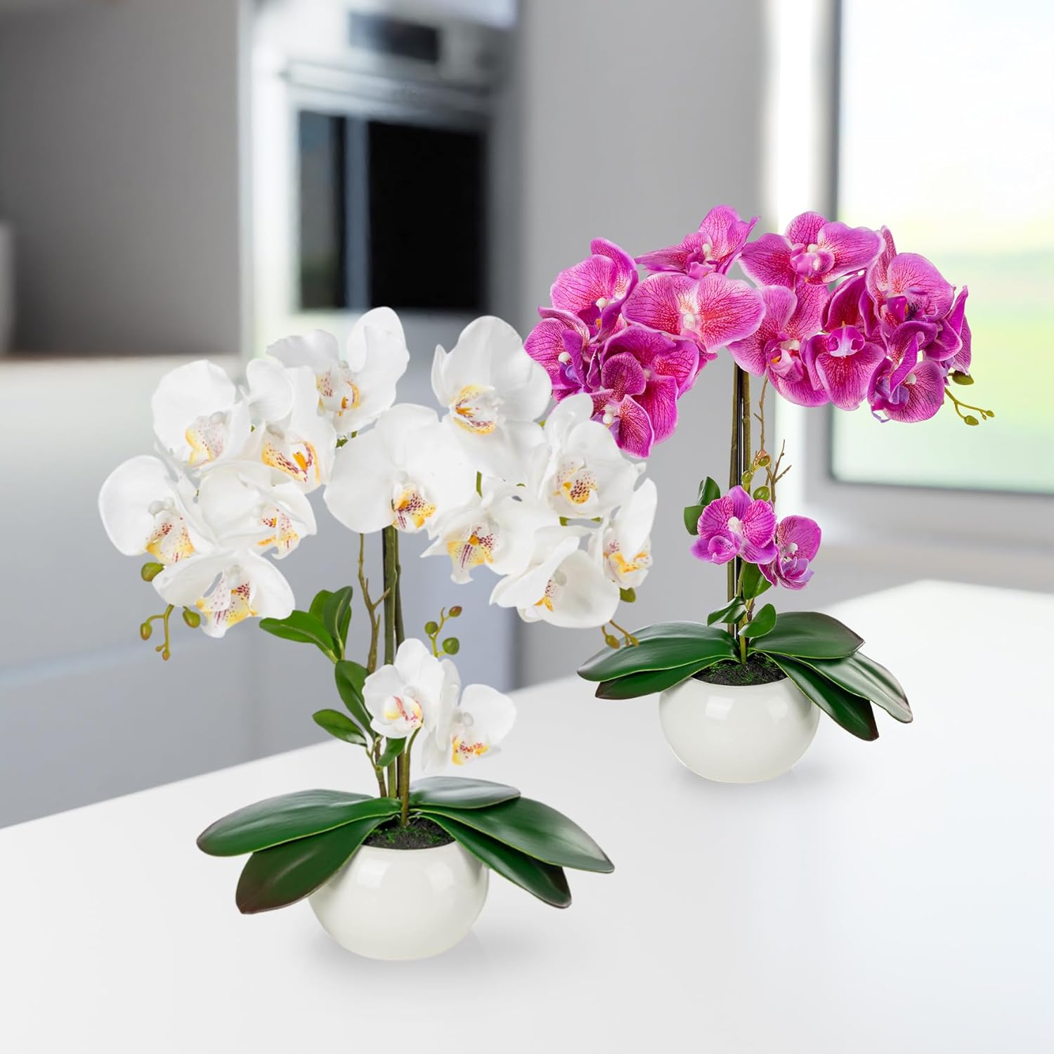 PASCH Комплект от 2 изкуствени орхидеи в керамични саксии с висок гланц (40 см) Изкуствени цветя в саксия Изкуствени цветя като истински изкуствени орхидеи в саксия Изкуствени цветя (бяло/розово)