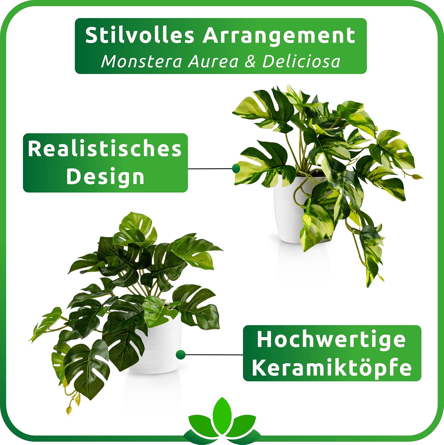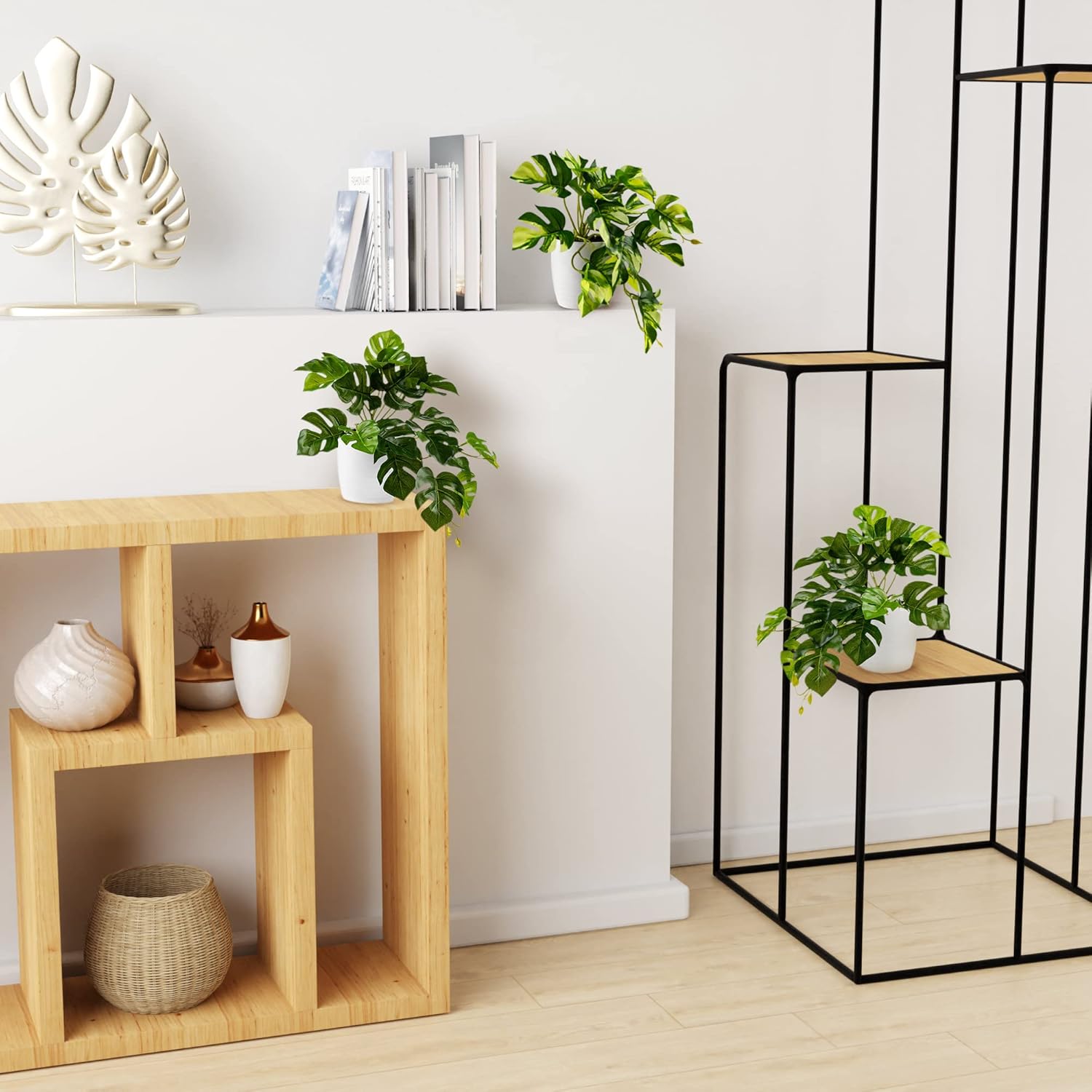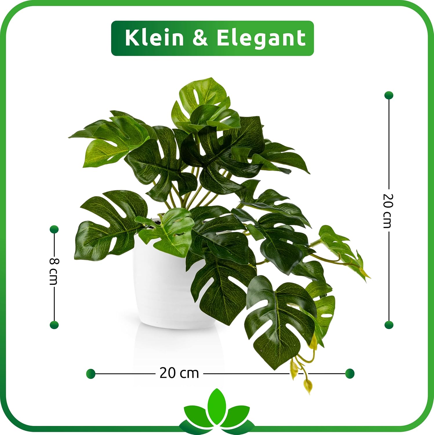 PASCH Комплект от 3 изкуствени монстера (20 см) в бели керамични саксии: Изкуствени растения като истински монстера, изкуствено растение за окачване в саксия, висящо растение, изкуствено съчетаване