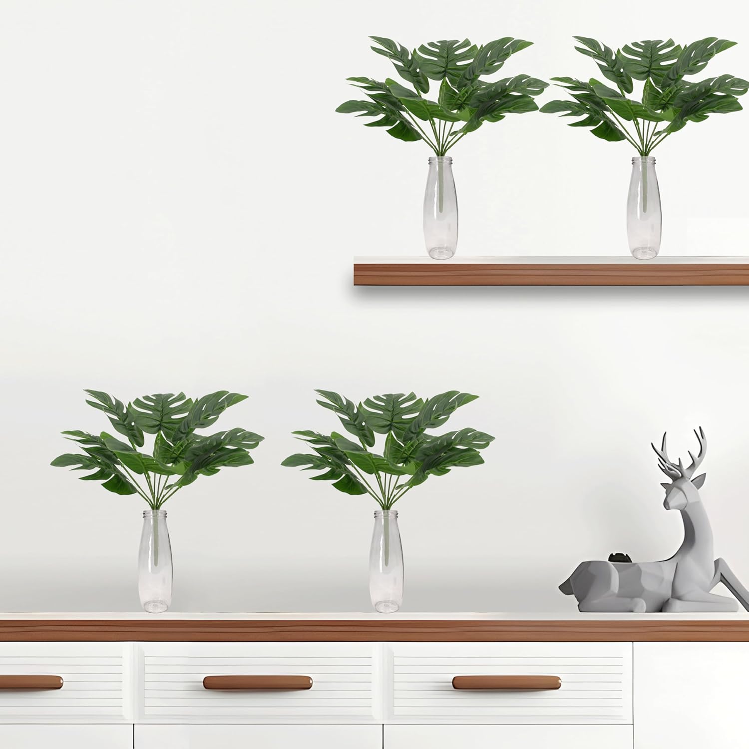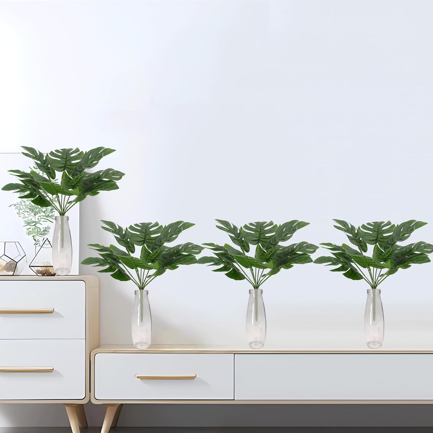 PASCH Комплект от 4 Монстера без саксия (25 см): Изкуствени растения като истински изкуствени растения Изкуствено растение без саксия Изкуствено растение Монстера малка