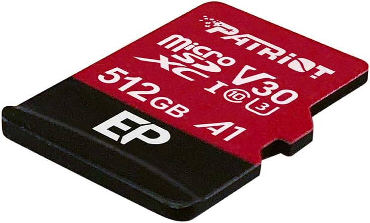 Patriot 512GB A1 V30 Micro SD карта за Android телефони и таблети, 4K видеозапис