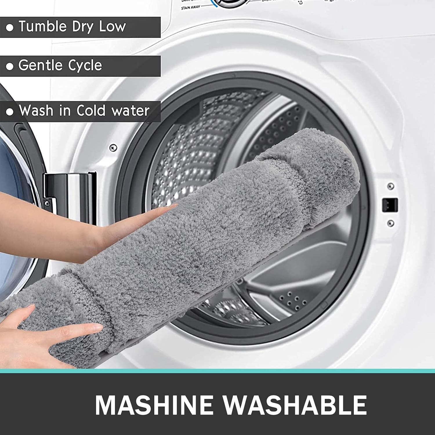 • Може да се пере в пералня и е лесна за почистване: просто поставете постелката за баня и тоалетната в пералнята със студена вода и сушете в сушилня. Не избелвайте. Съхне бързо. Не се обезмаслява, не се размазва и не се деформира.