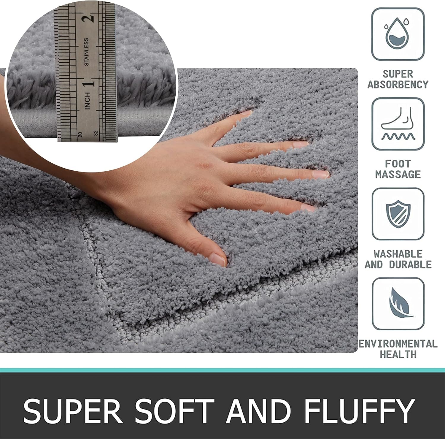 • Материал: този комплект постелки за баня е изработен от висококачествен микрофибър, височината на влакната е около 15 мм, много е мек и удобен, абсорбира бързо водата, предпазва краката ви от студения под.