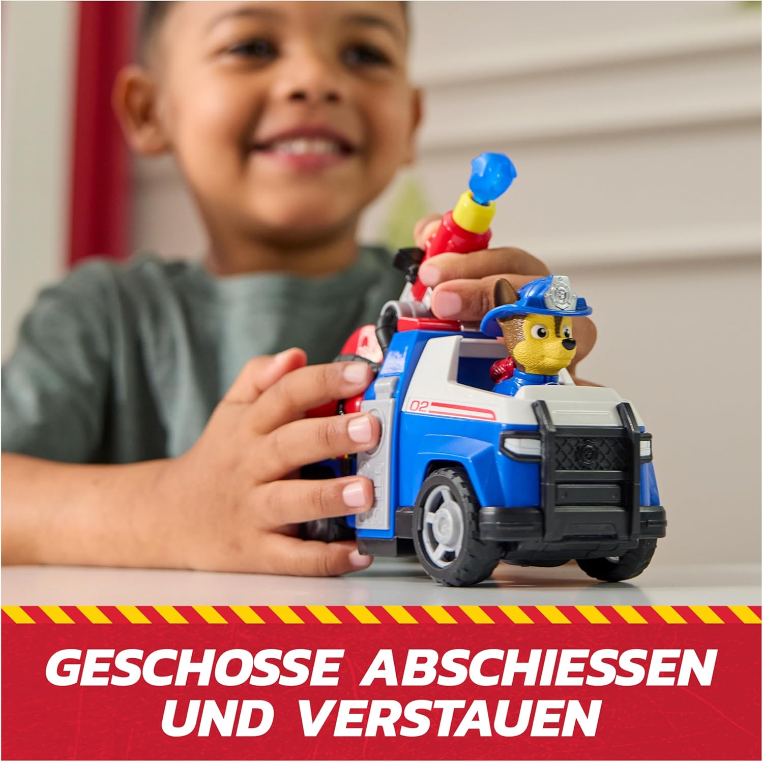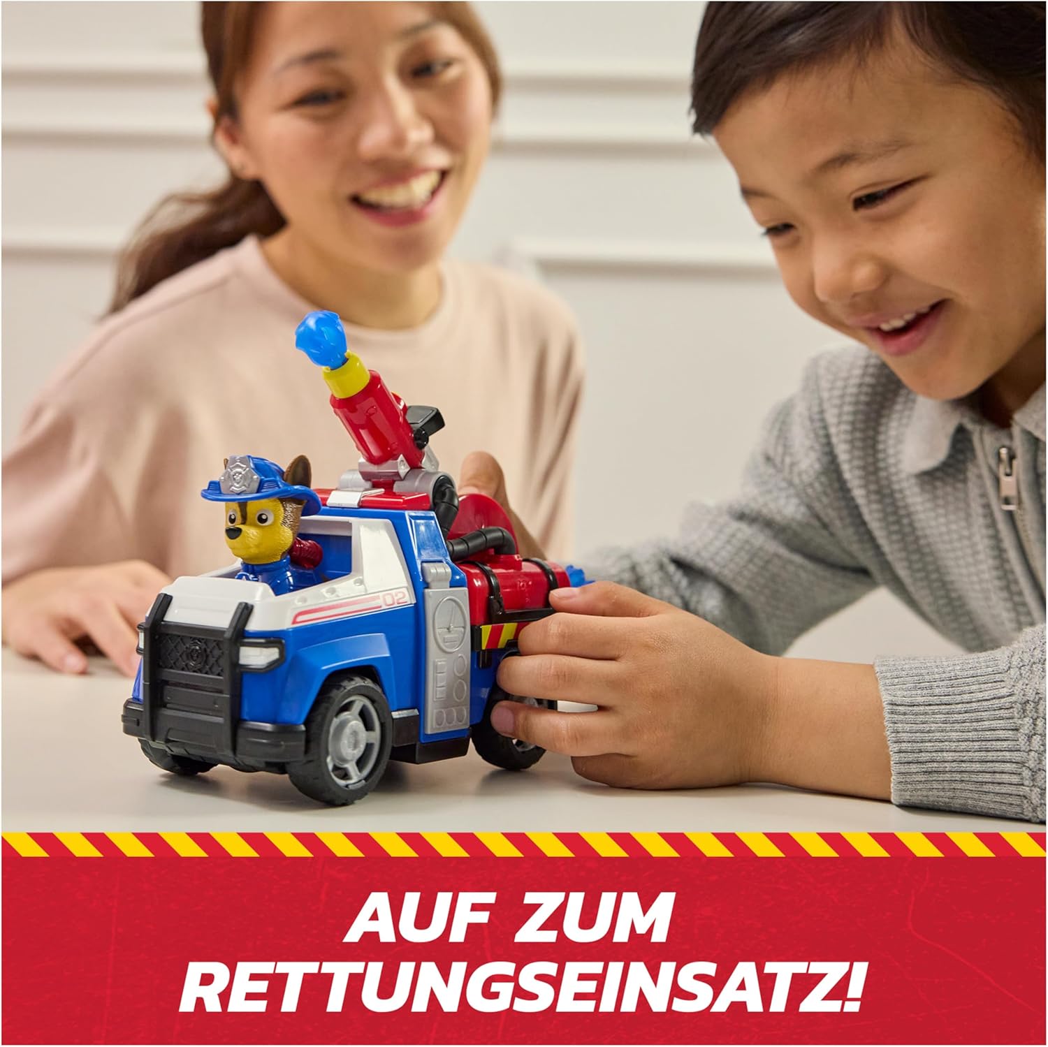 • Екшън играчка с функция за гасене – Спасителното превозно средство Chase с накланяща се стълба и вградена пръскачка кара малки водни фигурки да летят, а загасналите пламъци осигуряват истинско усещане за приключение.
