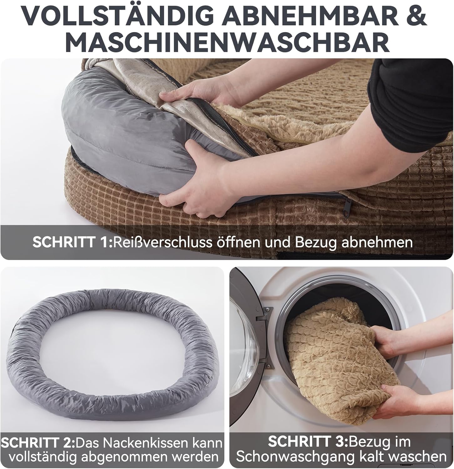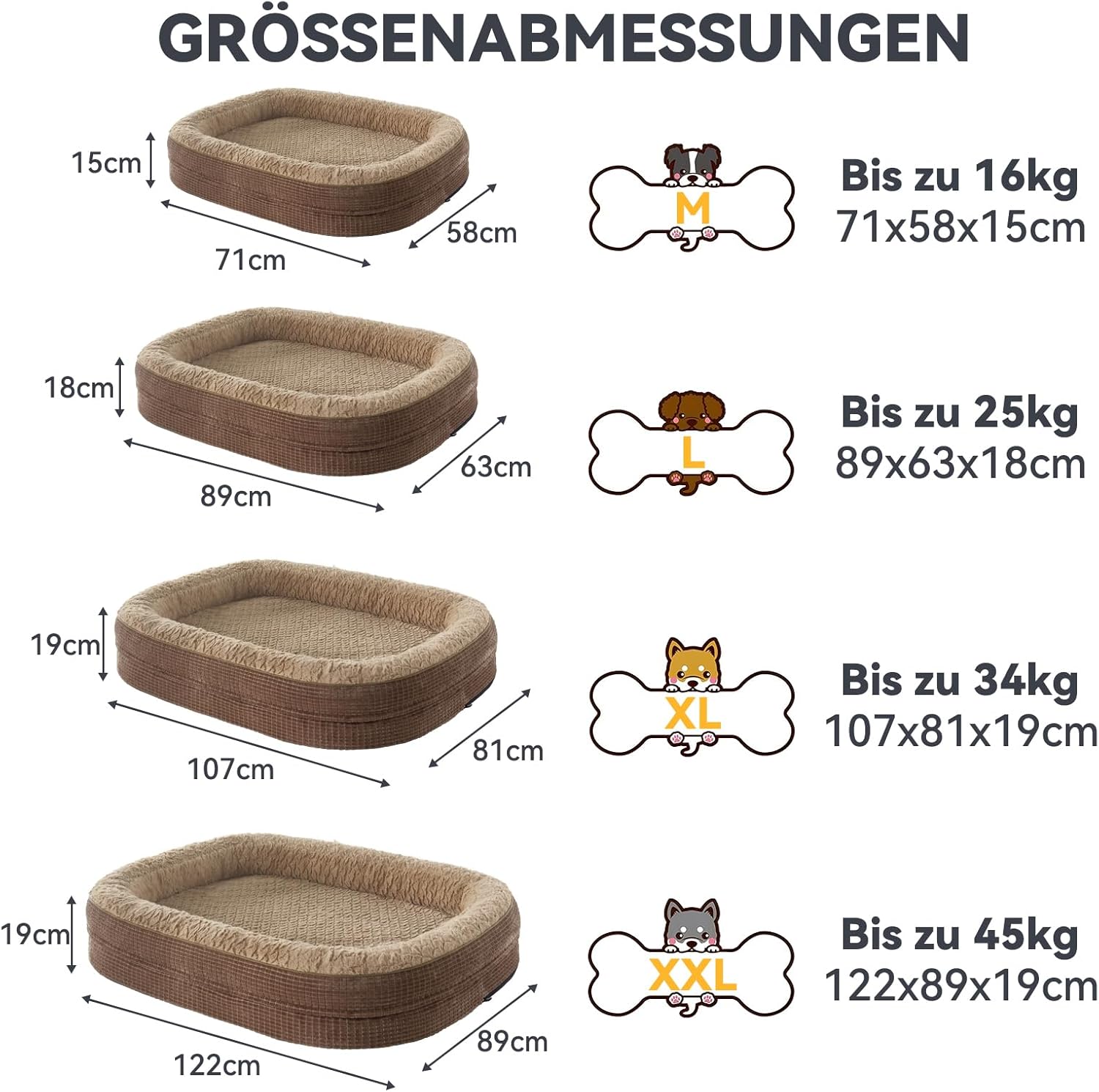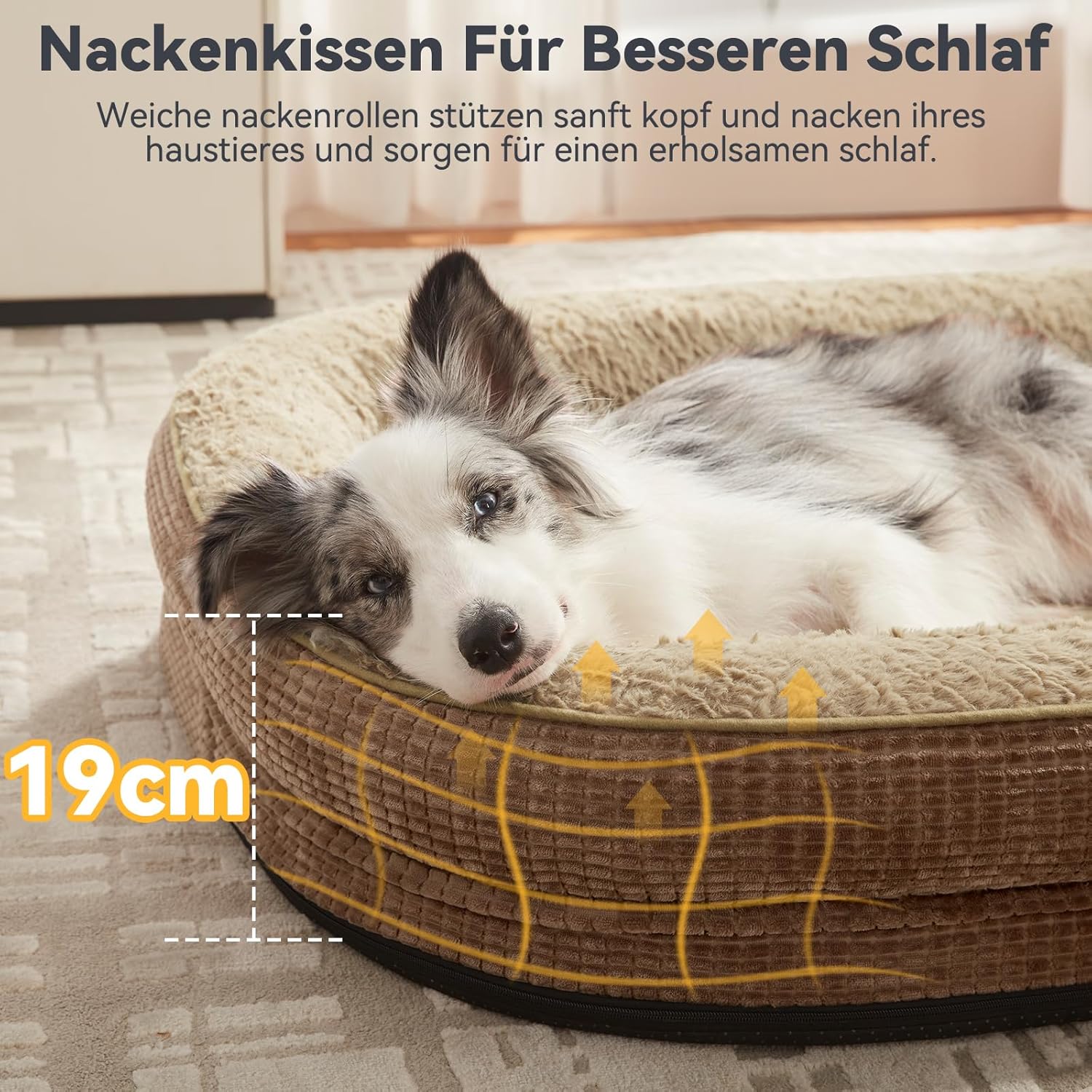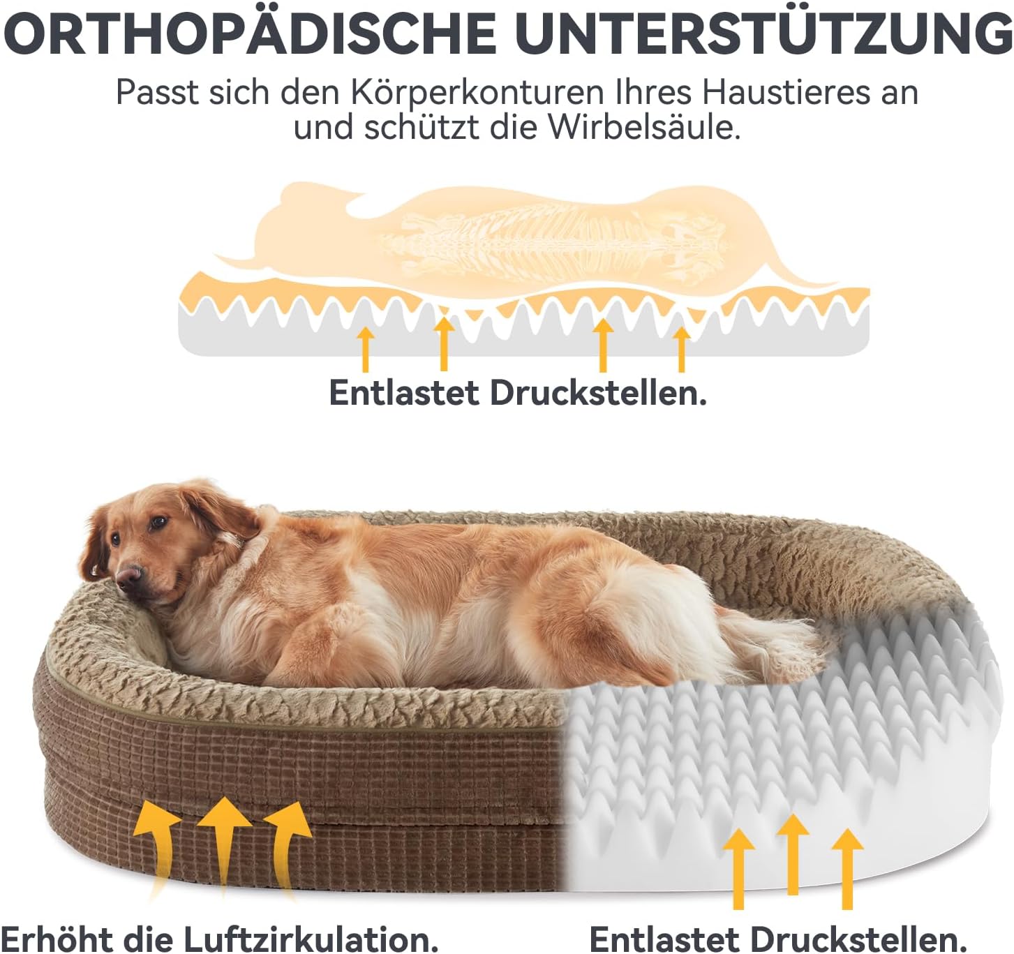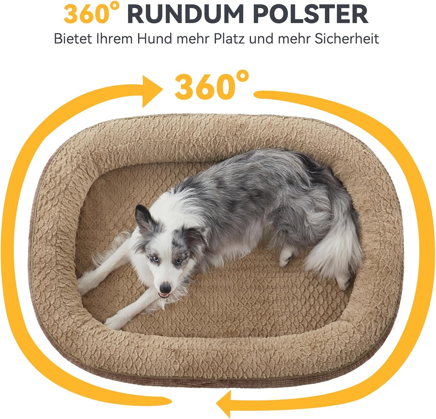 • 360° подплата: Това ортопедично легло за кучета с пълната си 360° подплата осигурява безопасно, затворено пространство - идеално за кучета, които обичат да се свиват или да се облягат на тях. Подплатените подложки поддържат главата и врата от всички страни, осигурявайки по-добър сън и комфорт на цялото тяло във всяка позиция.
