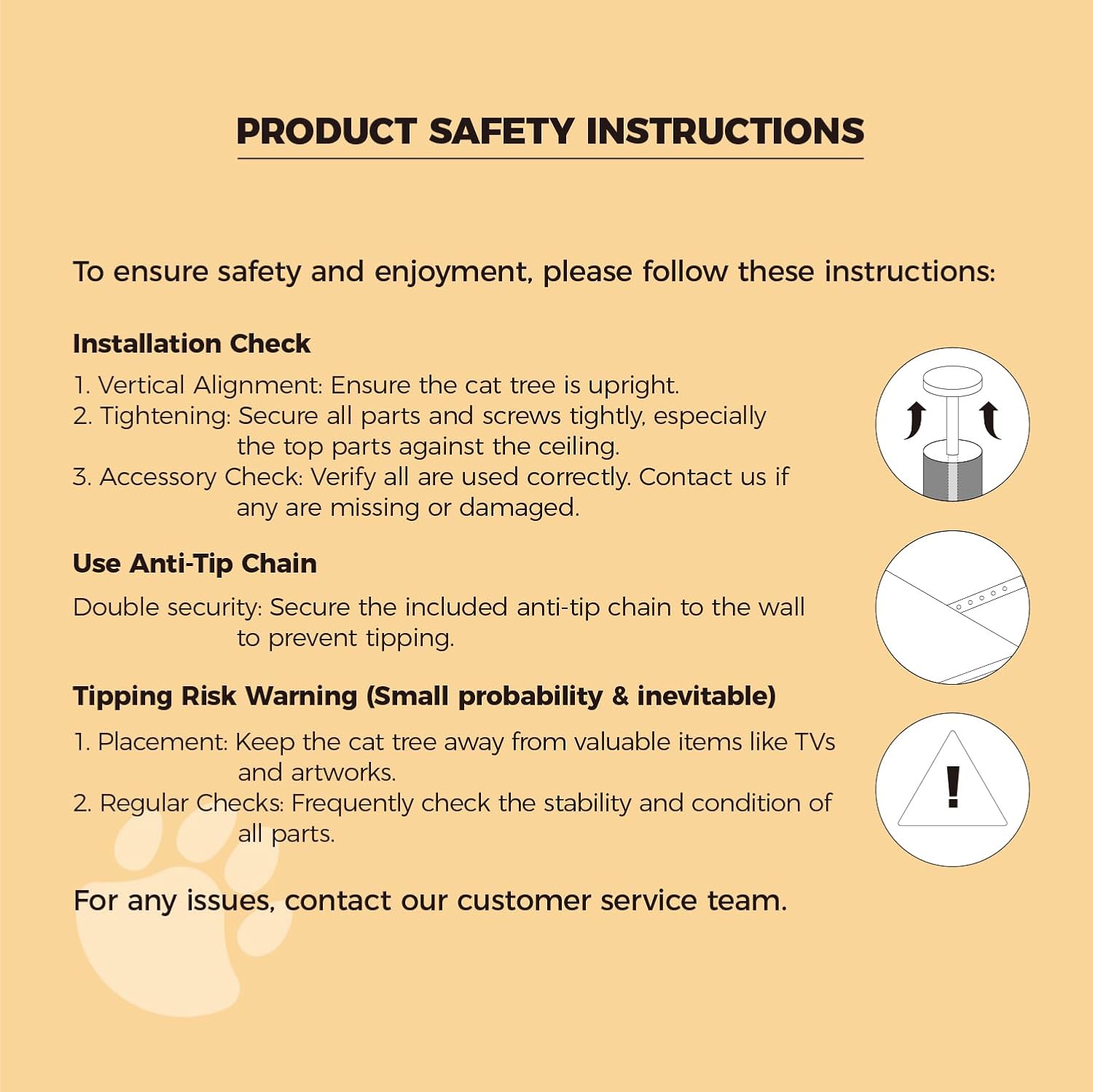 The entire scratching post can be attached to the ceiling, the structure is then stable and stable. Cats weigh over 20 lbs cannot fit this scratching post.