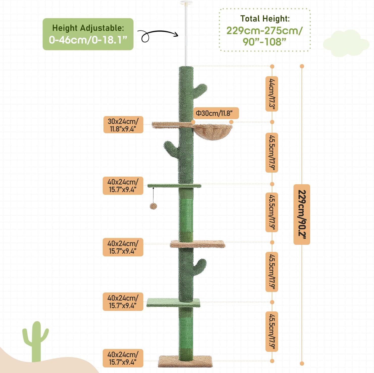 Some of the posts are covered with 100% natural sisal to satisfy the needs of scratching, and the hanging ball is designed to practice hunting skills.
