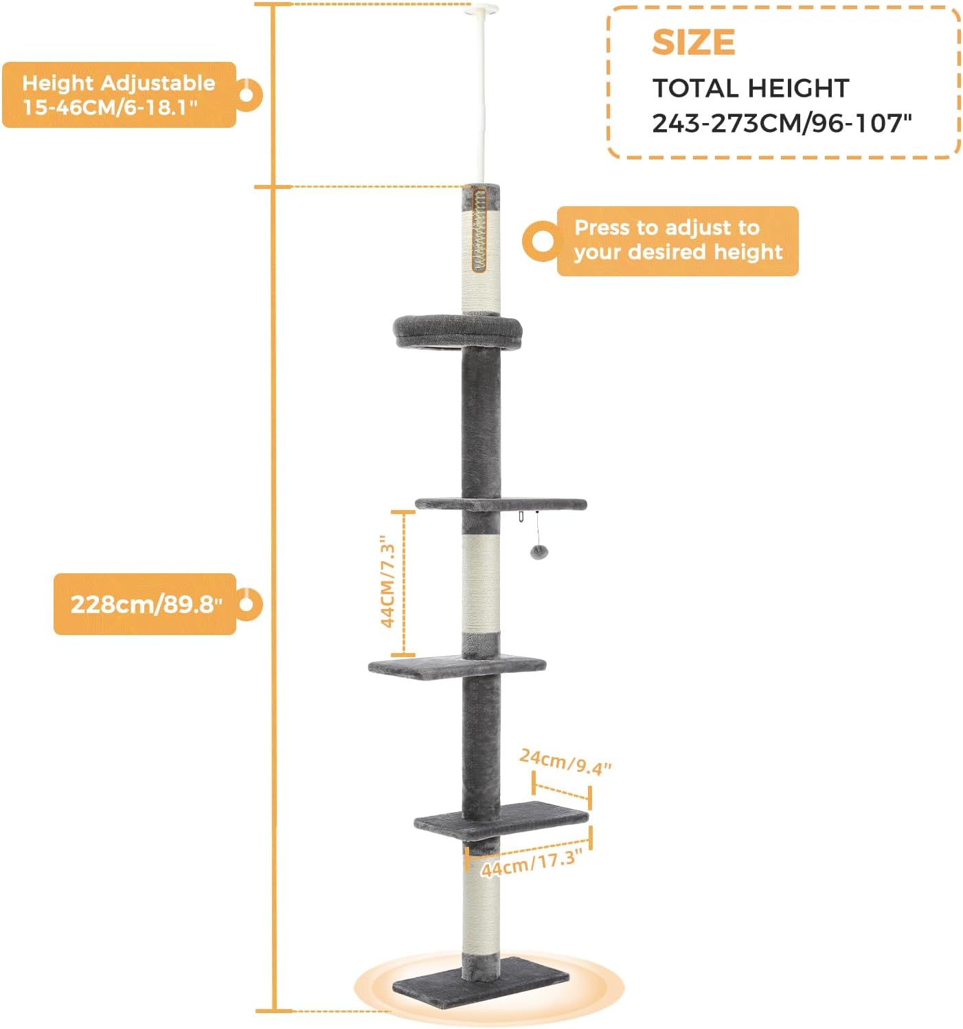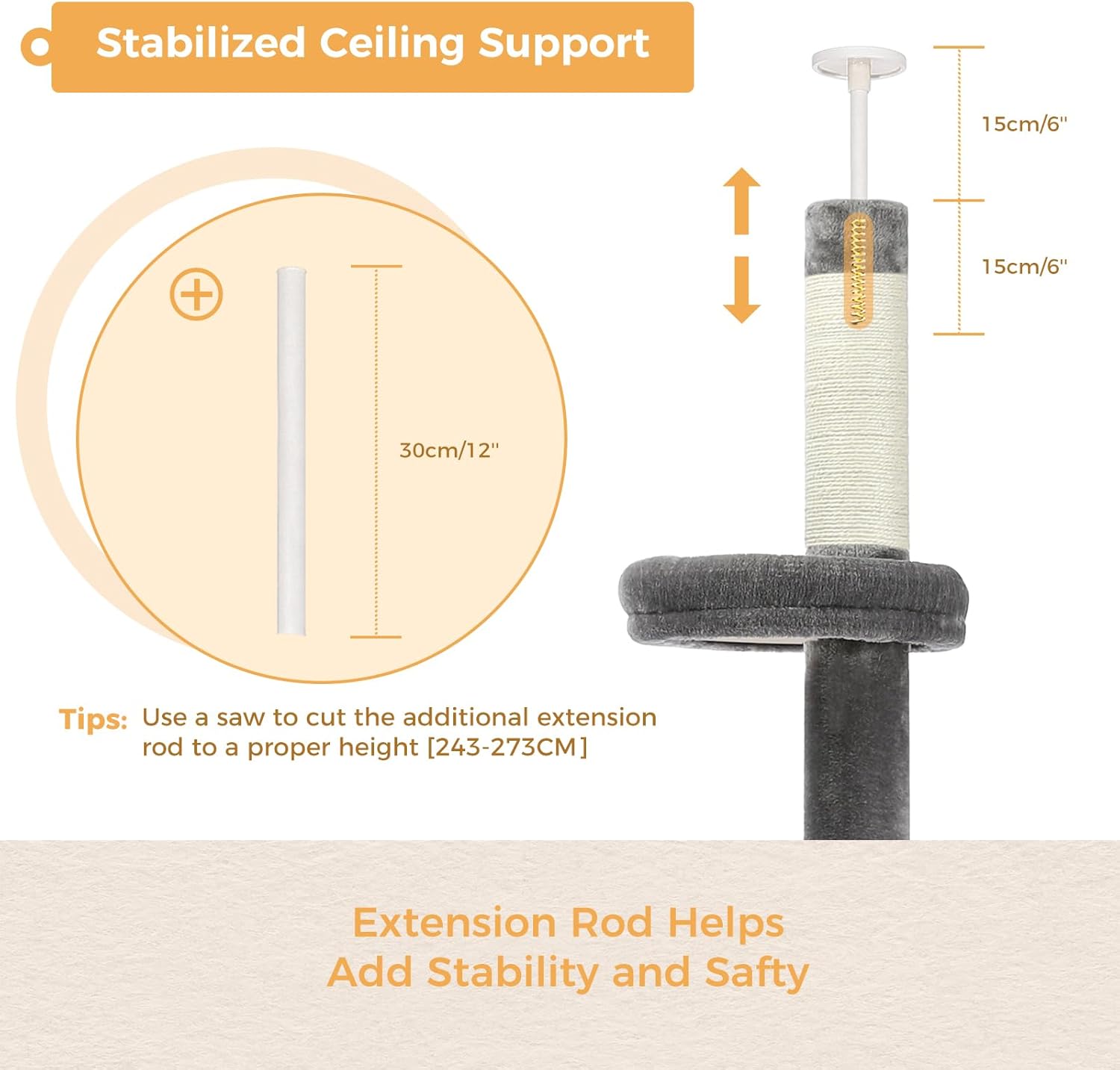 The entire scratching post can be attached to the ceiling, the structure is then stable and stable. Cats weigh over 20 lbs cannot fit this scratching post.