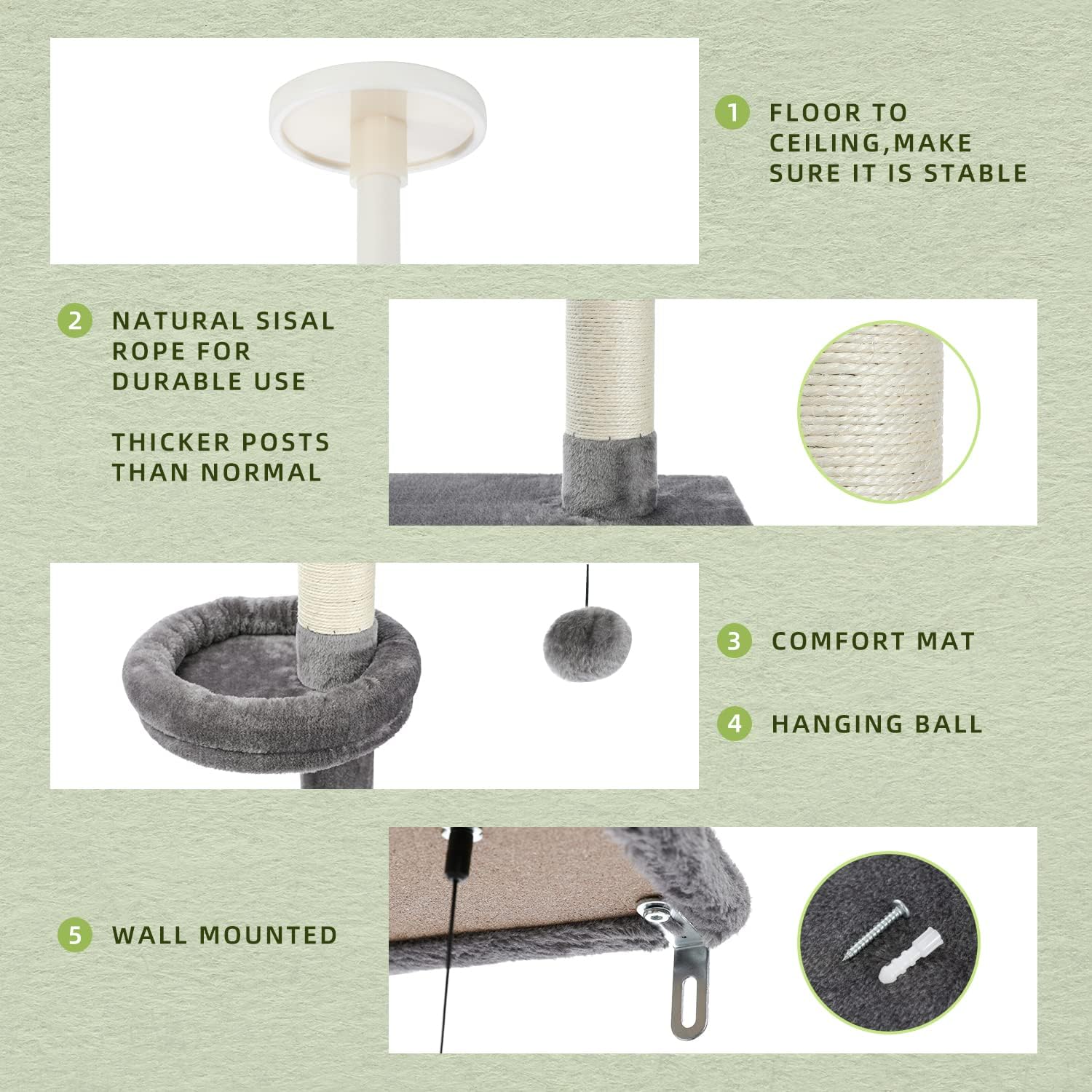 Some of the posts are covered with 100% natural sisal to satisfy the needs of scratching, and the hanging ball is designed to practice hunting skills.
