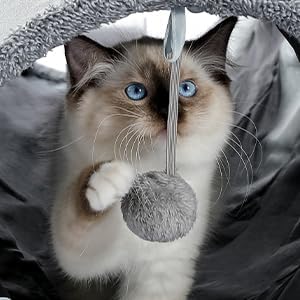 • Игра и забавление за котки: с 2 странични отвора и 1 висяща топка за разнообразно забавление. Може да се комбинира с други тунели за разширяване на зоната за игра. Идеален е и за интерактивни игри с вашата домашна котка.